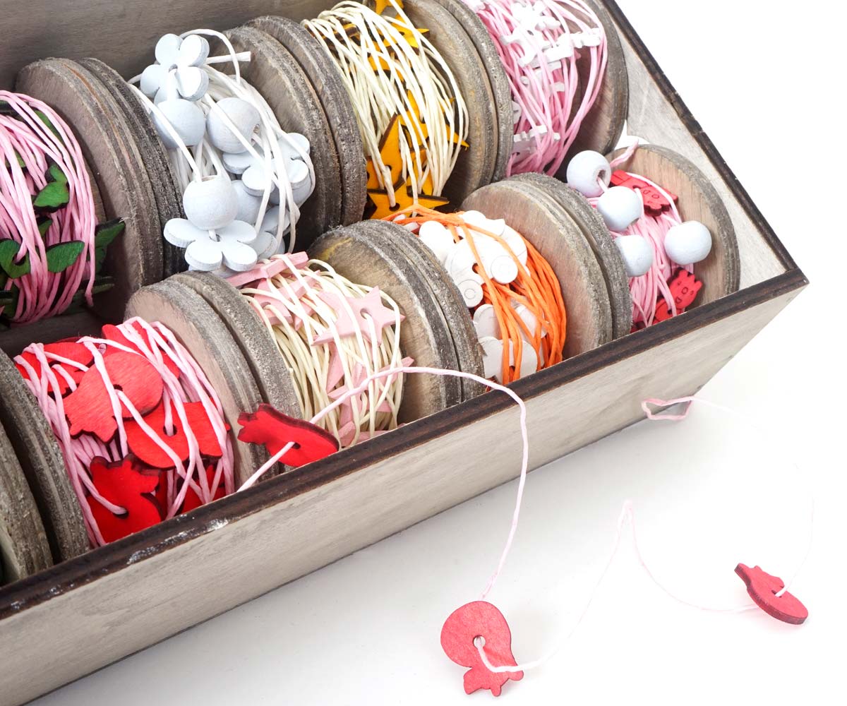 Deko-Schnur Set mit Holzrollen – Farbenfrohe Dekoration für jeden Anlass