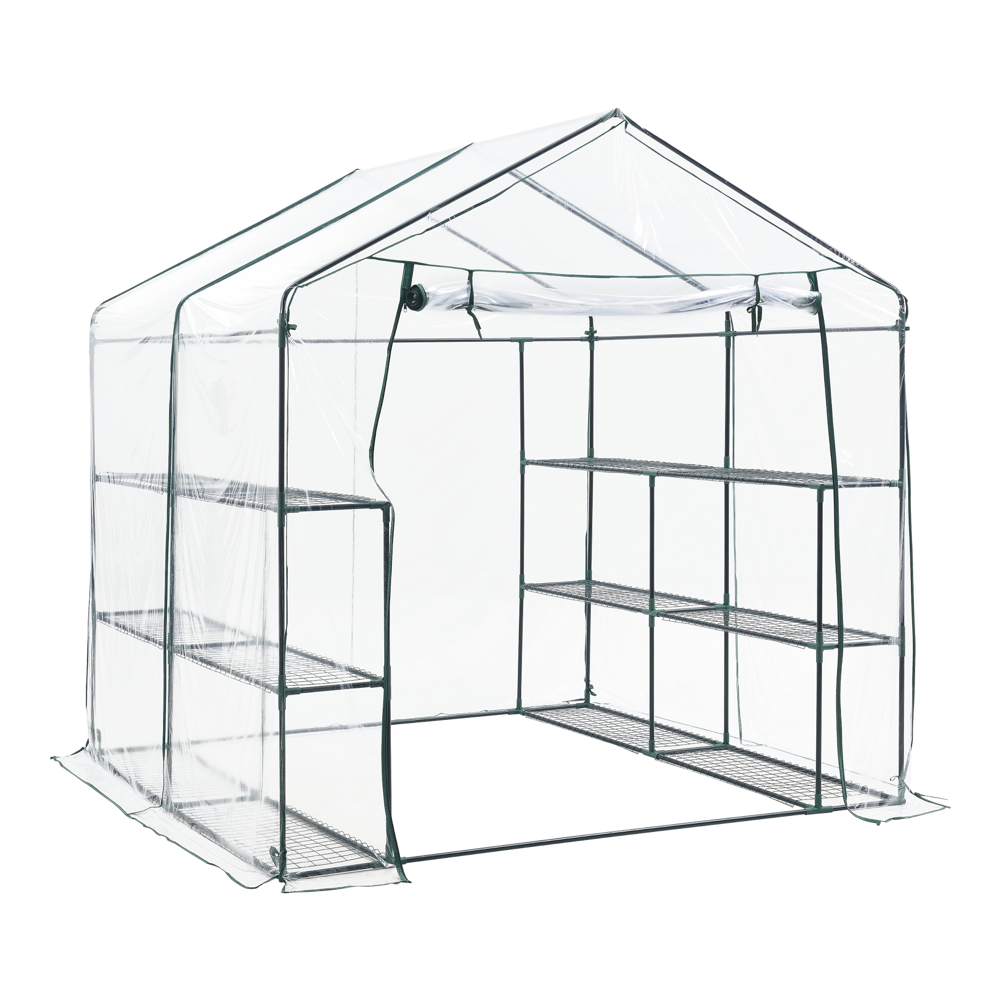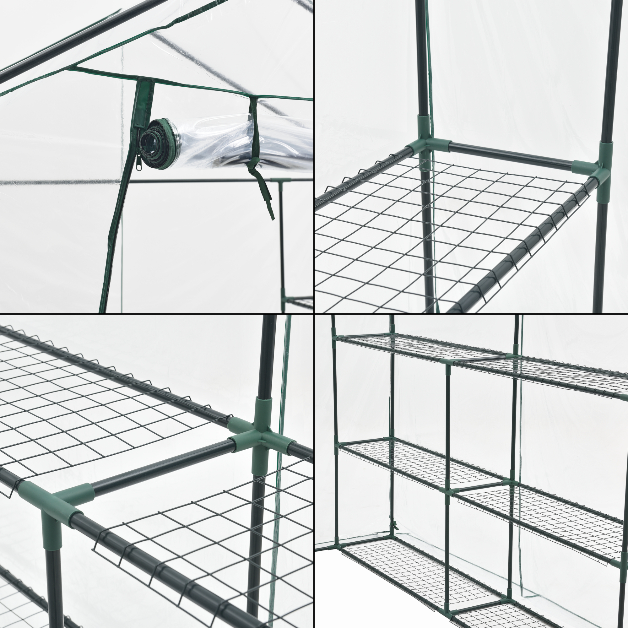 – Mit Ablagen im Gewächshausinnern