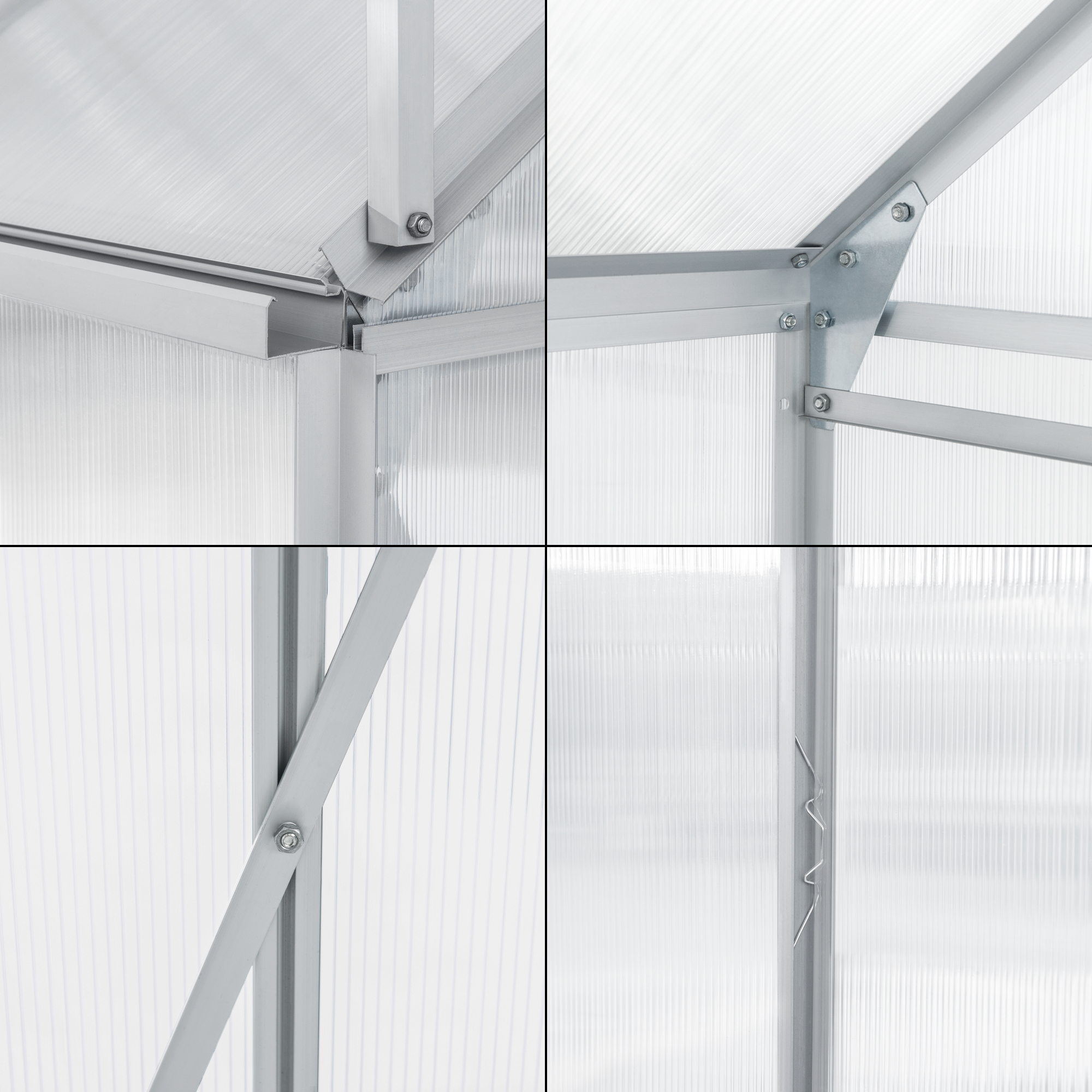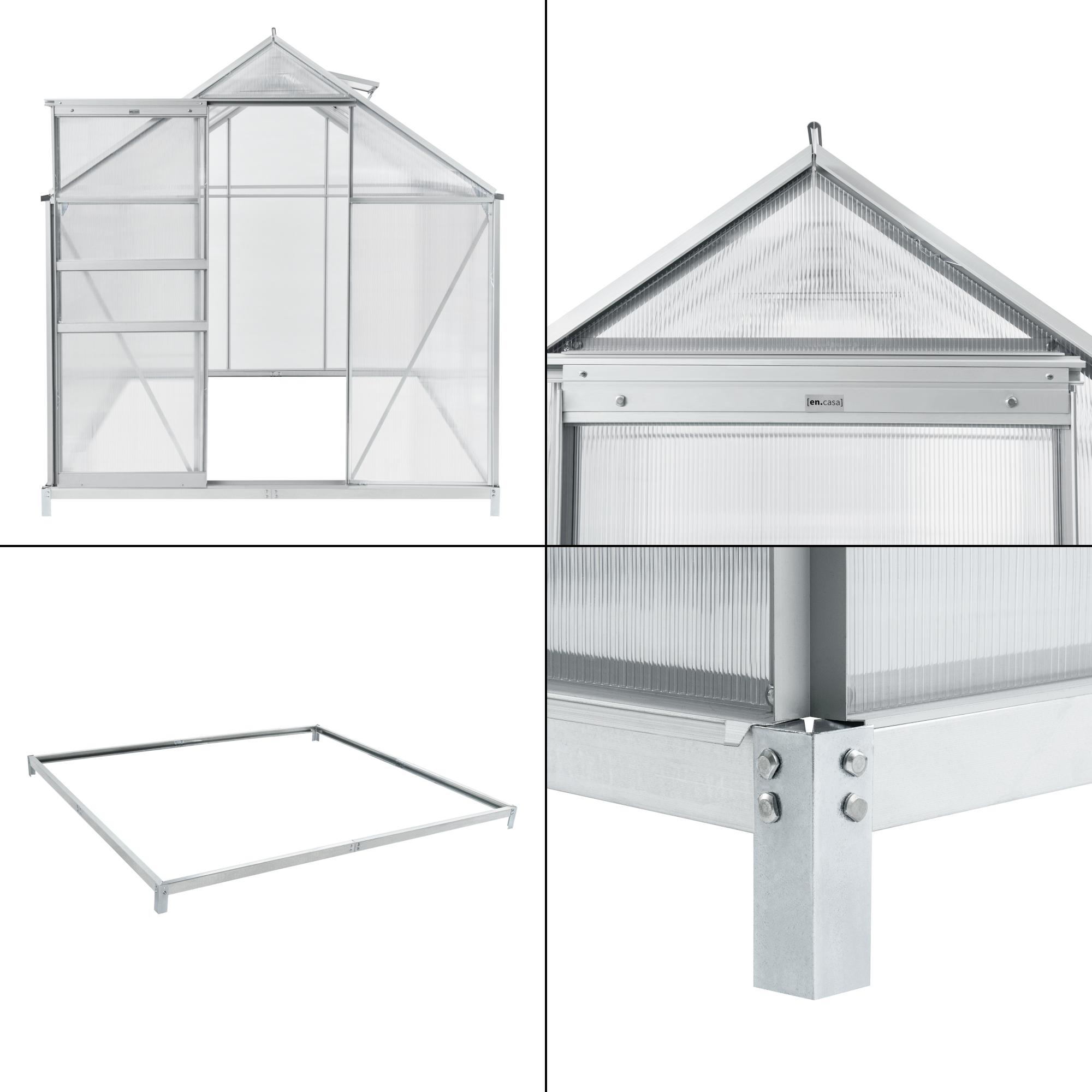 – Gewächshaus-Rahmen: Eloxiertes Aluminium