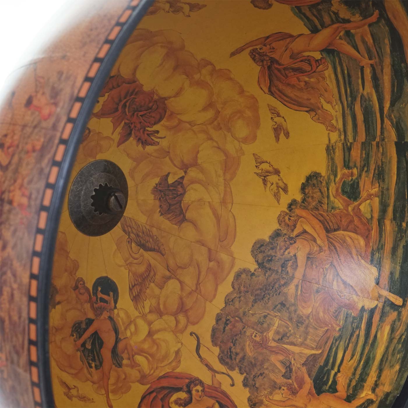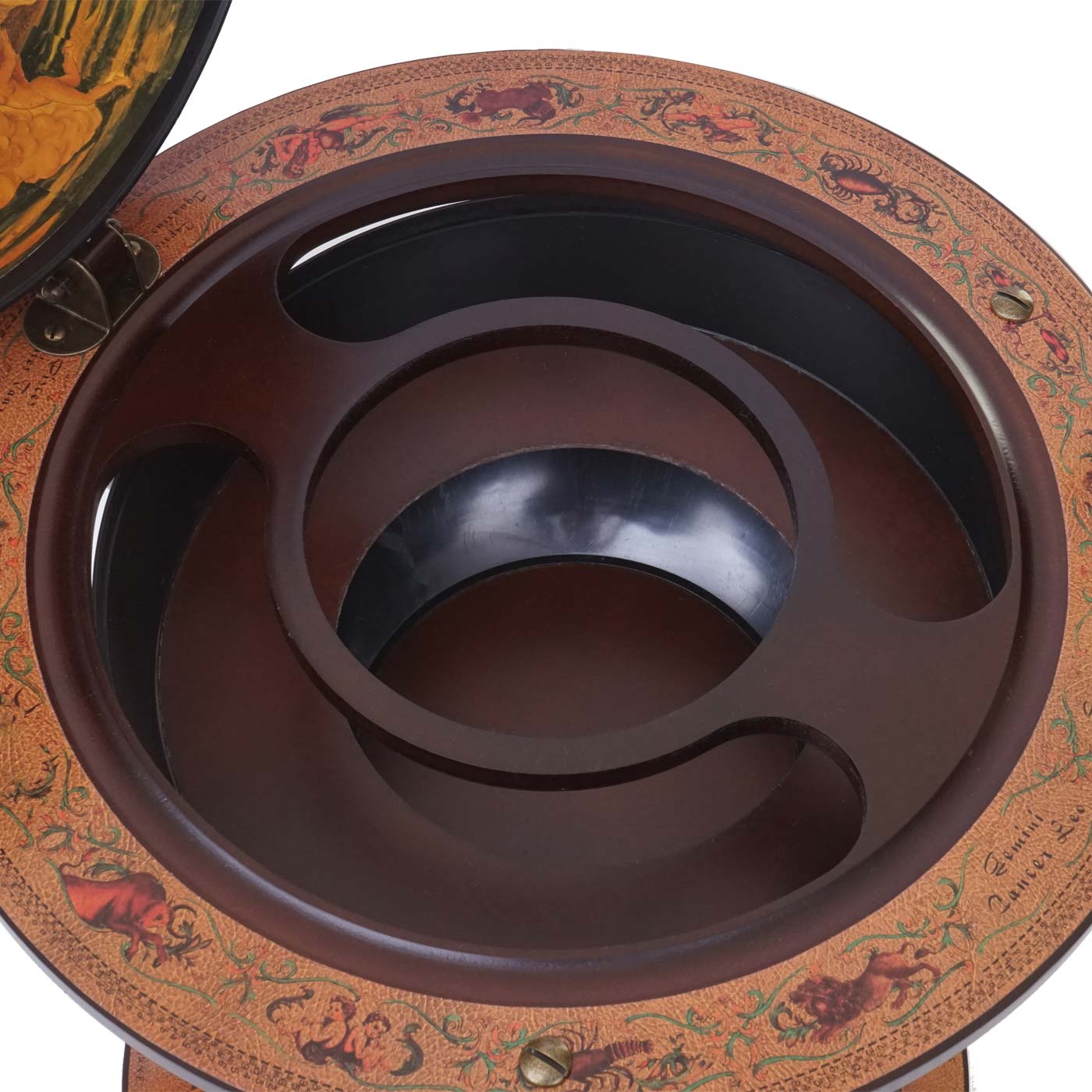 Die Globus-Bar ist ein ausgefallenes und funktionales Highlight für jedes Wohnzimmer. Neben ihrem ästhetischen Design, verziert mit einer antiken Weltkarte auf der Außenseite und einem Kunstwerk im Inneren, bietet sie ausreichend Stauraum für Ihre liebsten Getränke und Gläser.