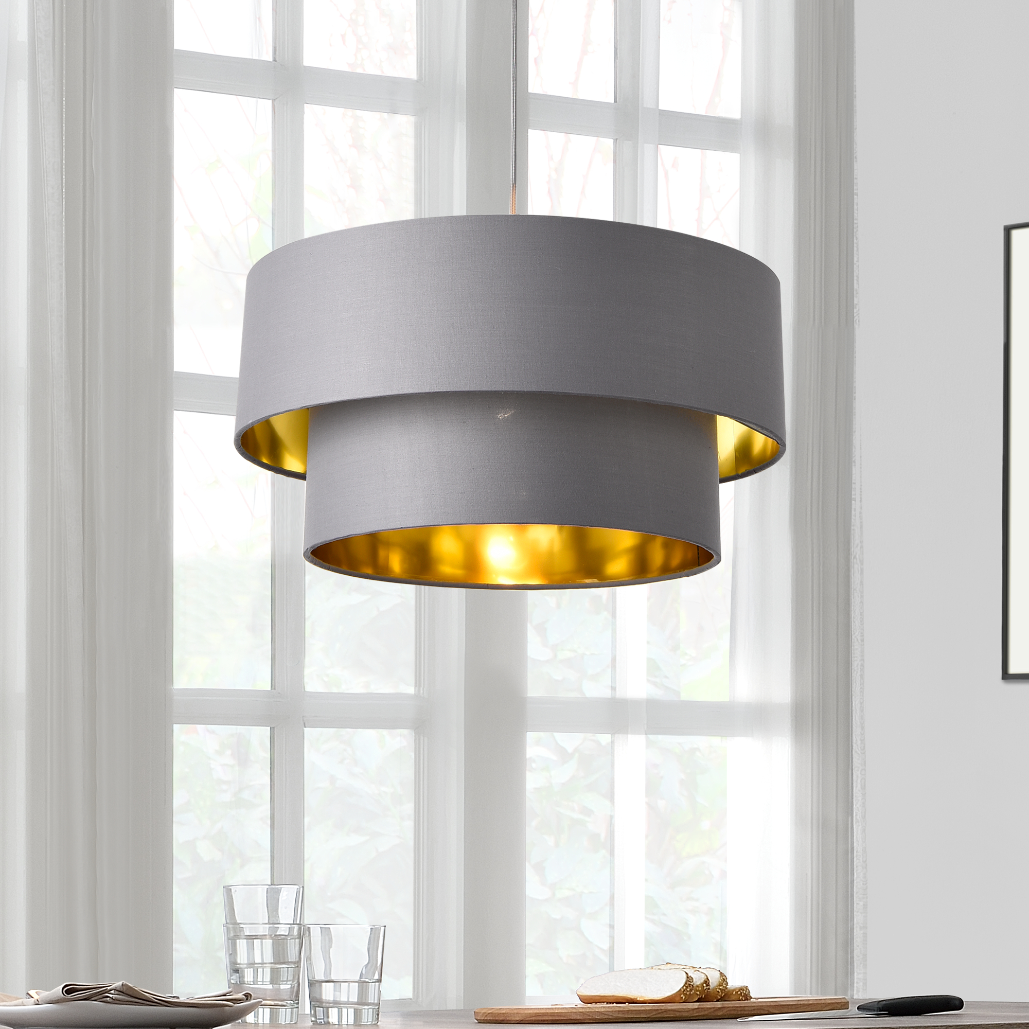 Hängeleuchte Lopar 40cm Metall Stoff Grau-Gold