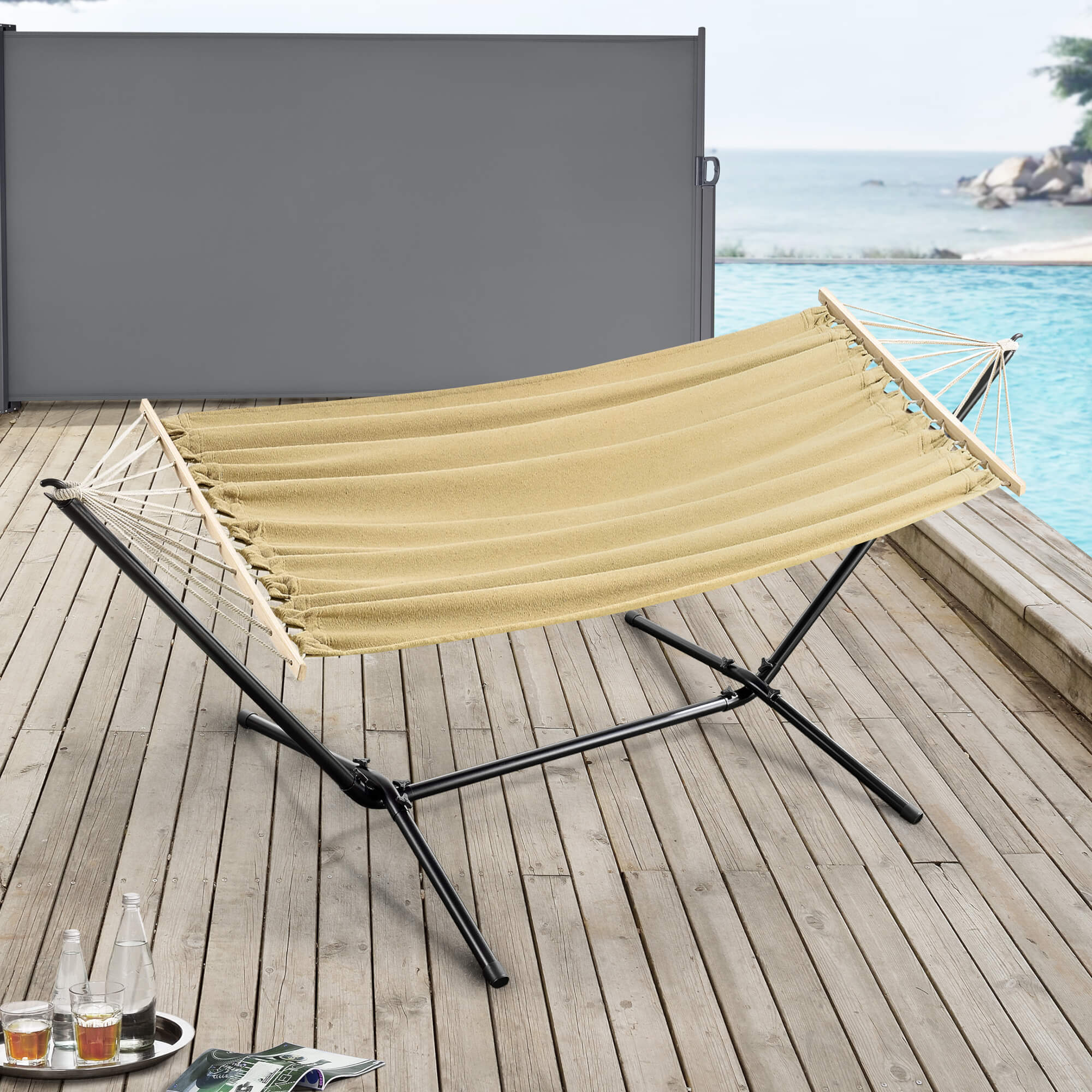 Hängematte ‚Surte‘ mit Gestell 200x100cm Beige