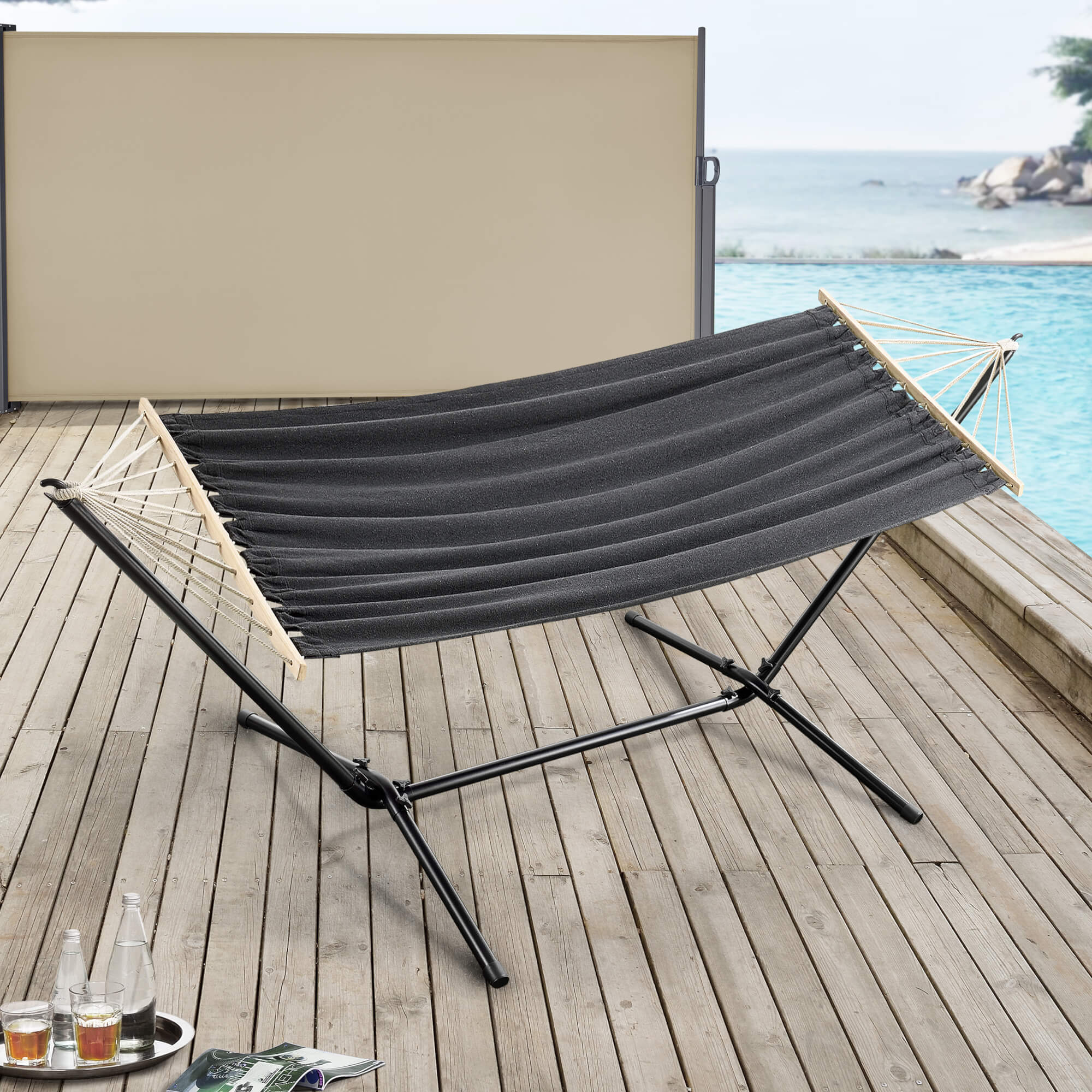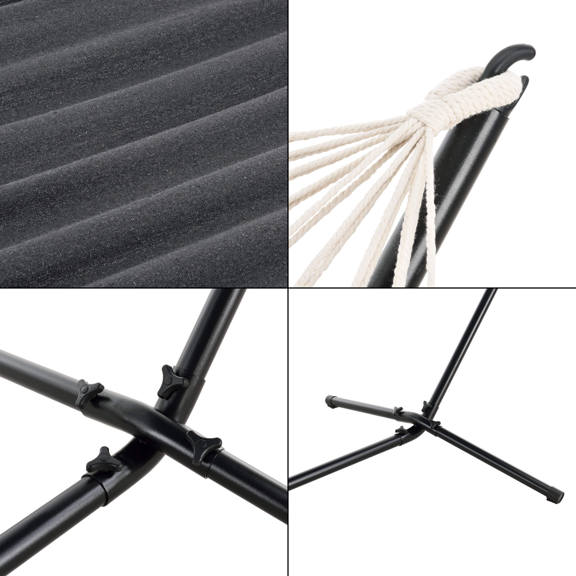 Das Gestell bietet eine stabile und wetterbeständige Unterkonstruktion für die Hängematte.