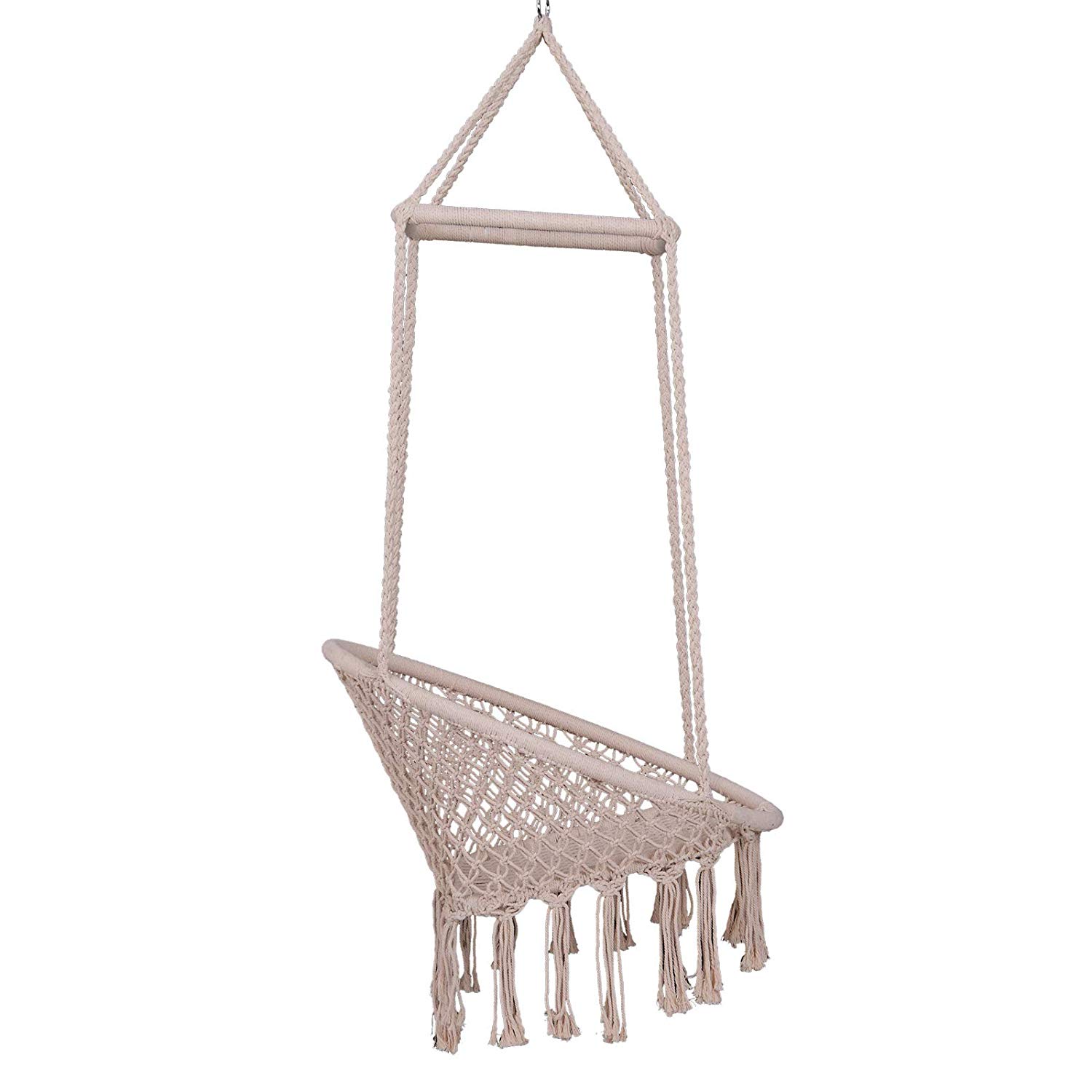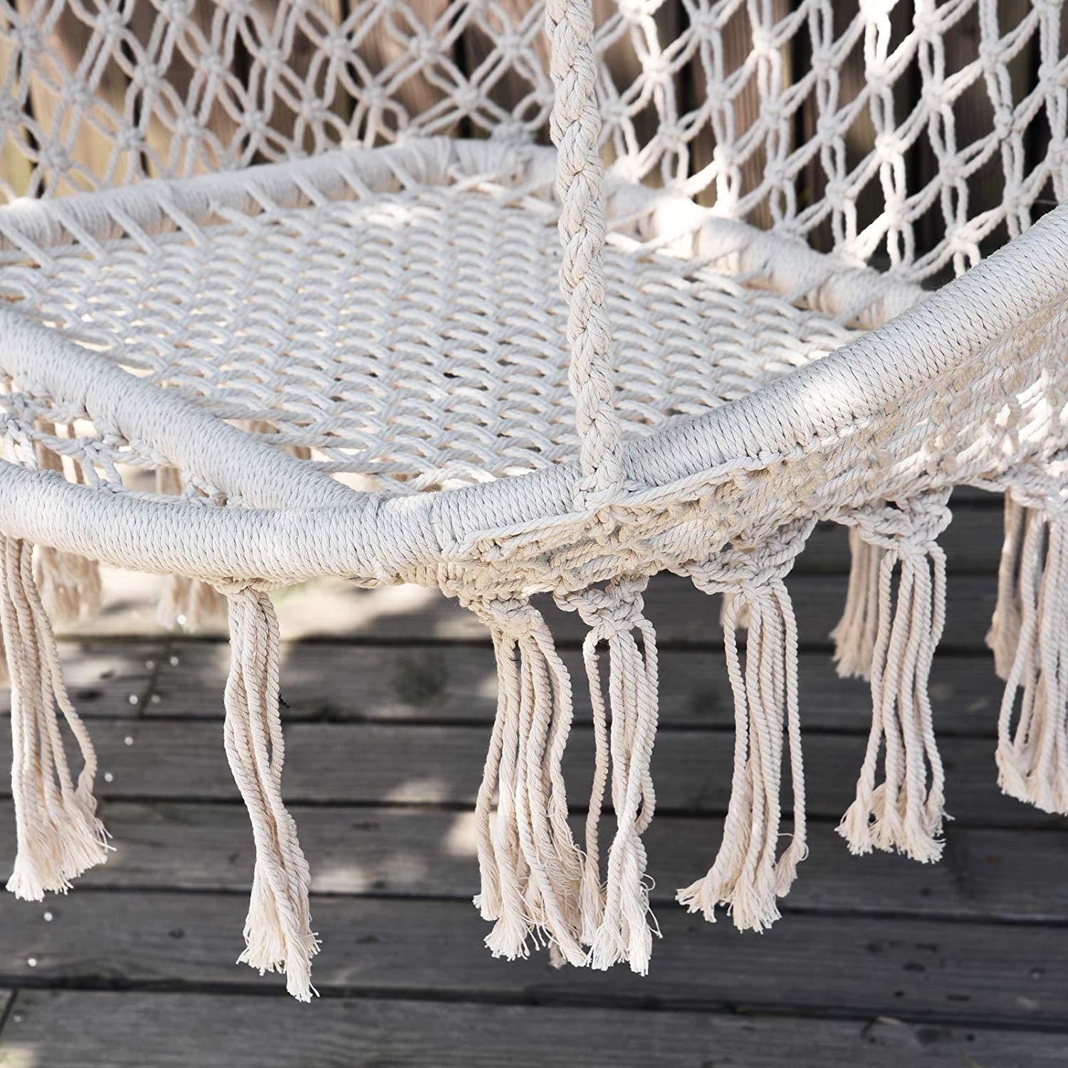 Dieser stilvolle, naturweiße Hängesessel wird garantiert zu Ihrem neuen Lieblingsplatz! Egal ob drinnen oder draußen, zu Hause oder unterwegs – unser Hängesessel ist der perfekte Rückzugsort zum Entspannen. Der robuste Netzsessel mit dekorativen Baumwollfransen ist UV- und wetterbeständig und verleiht jeder Umgebung eine entspannte Atmosphäre. Dank seines leichten Gewichts und der einfachen Handhabung ist er flexibel einsetzbar. Mit einer Belastbarkeit von bis zu 120 kg und einer großzügigen Sitzfläche ist er sowohl für Kinder als auch für Erwachsene geeignet.
