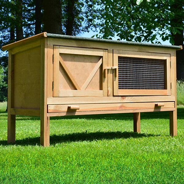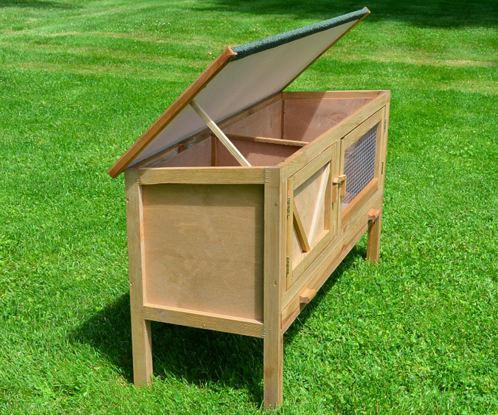 Unser Hasenstall Hasi ist ein robustes, solides Modell mit klappbarem Dach.
