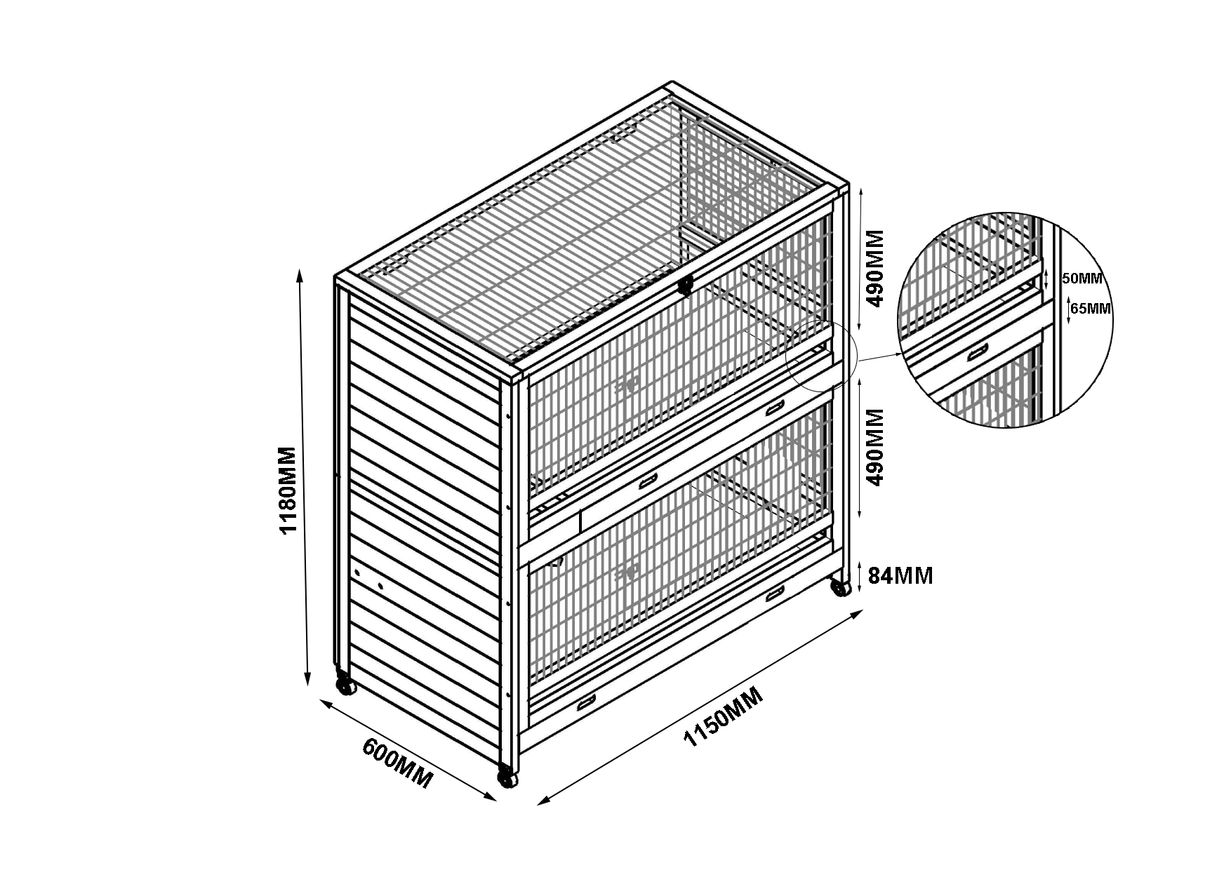 Der Kaninchenstall 046 „Knuffel“ ist ein sehr modernes, gemütliches und luftiges Zuhause für Ihre Kleintiere. Der neue Indoorstall ist zweistöckig und hat vier Räder, mit denen man den Stall bequem bewegen kann. Zwei Räder lassen sich mit Bremsen feststellen.