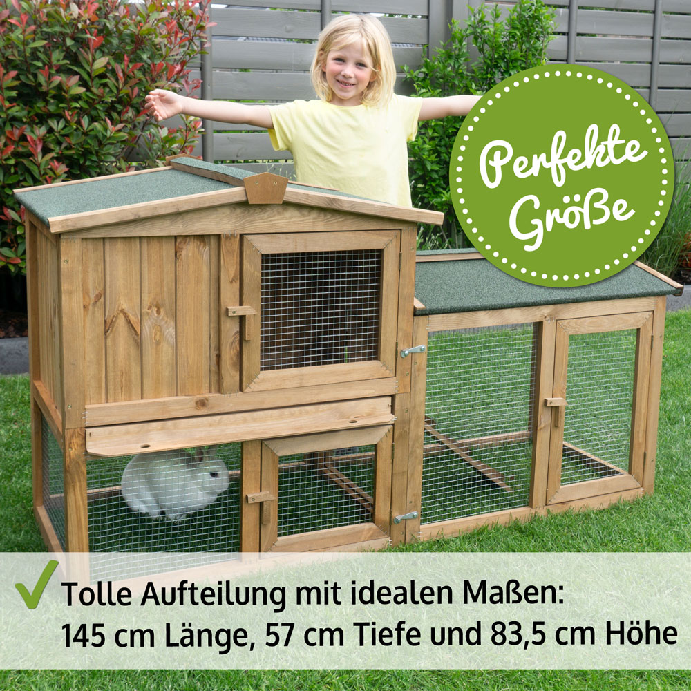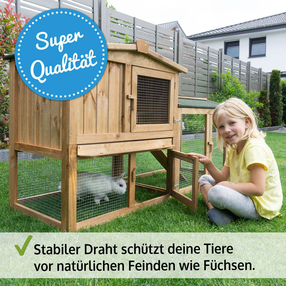 Meister Lampe macht in jedem Garten etwas her und bietet deinen Tieren eine artgerechte Haltung mit viel Licht, frischer Luft, Grünfutter und Rückzugsmöglichkeiten. Auf diesen Stall werden deine Nachbarn neidisch sein. Gönne dir und deinen Nagern diesen bezahlbaren Luxus.