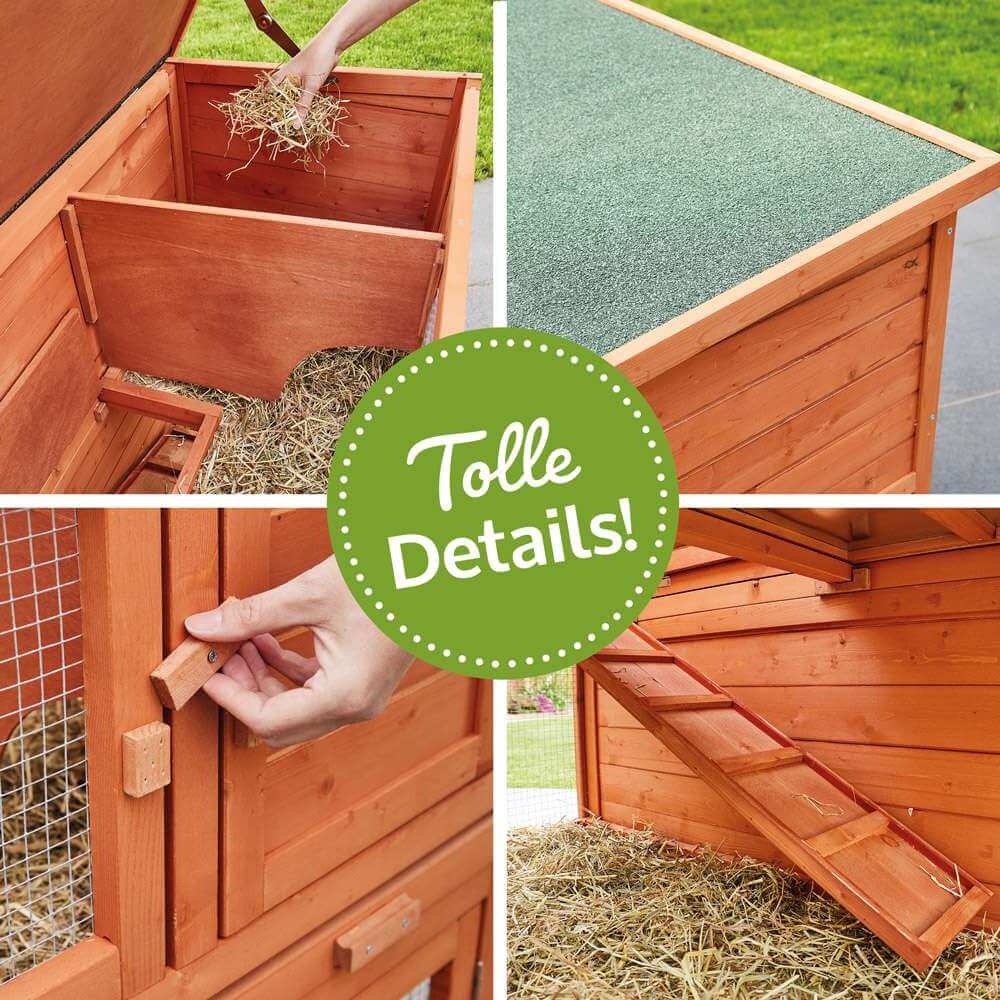 Der tolle Kleintierstall aus wetterfesten Materialien ist ein Highlight in Ihrem Garten und wird Ihnen viel Freude bereiten.
