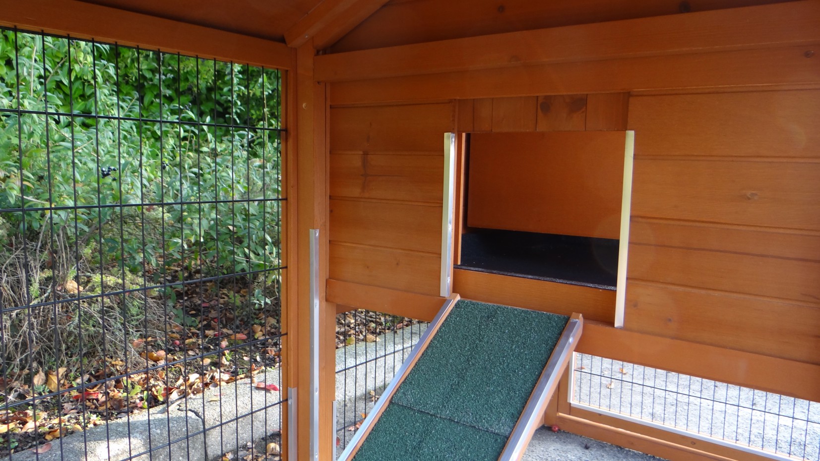 - Der Stall ist an den empfindlichsten Stellen mit Nageschutzstreifen ausgestattet.