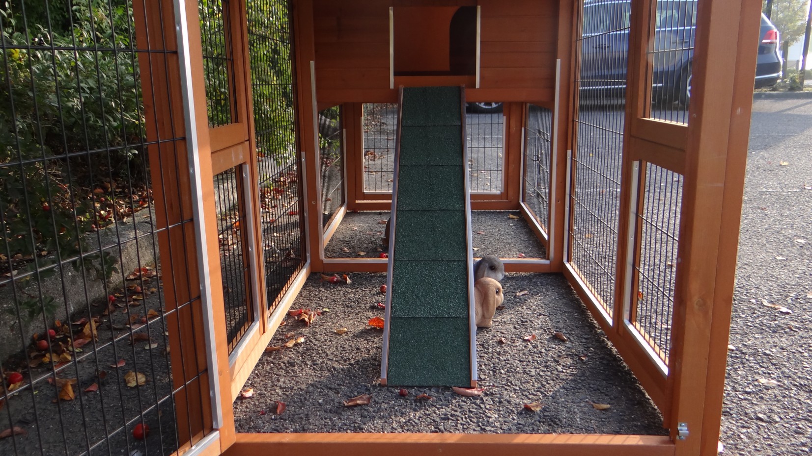 - Im unteren Auslauf befinden sich große Türen, sodass Ihre Kaninchen immer gut erreichbar sind.