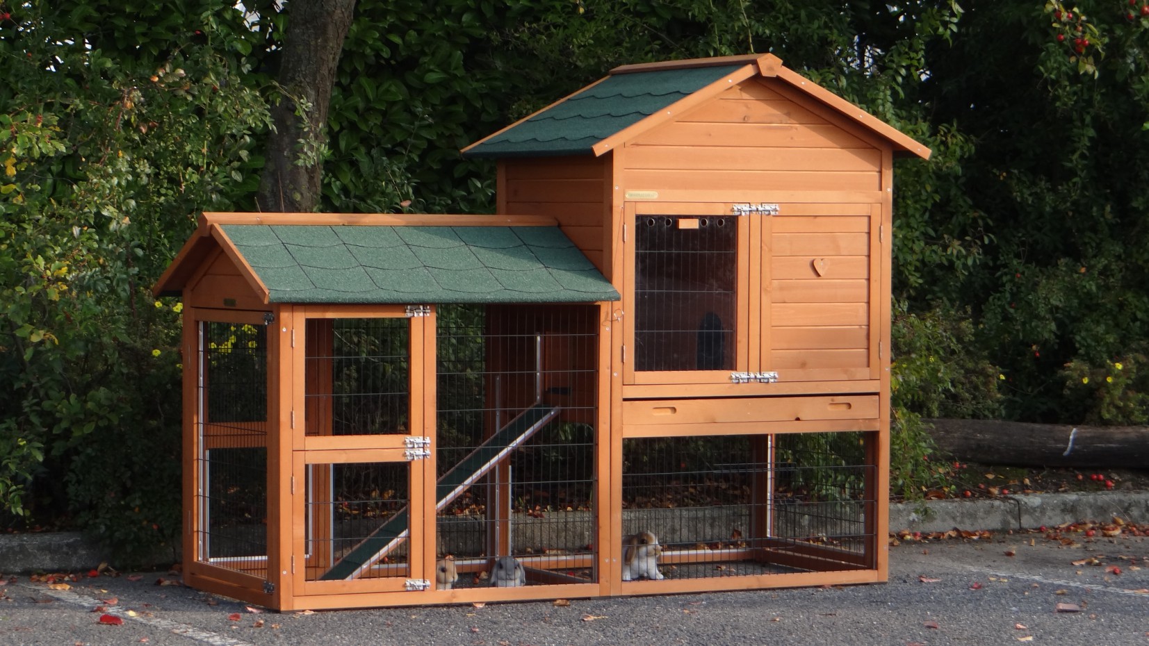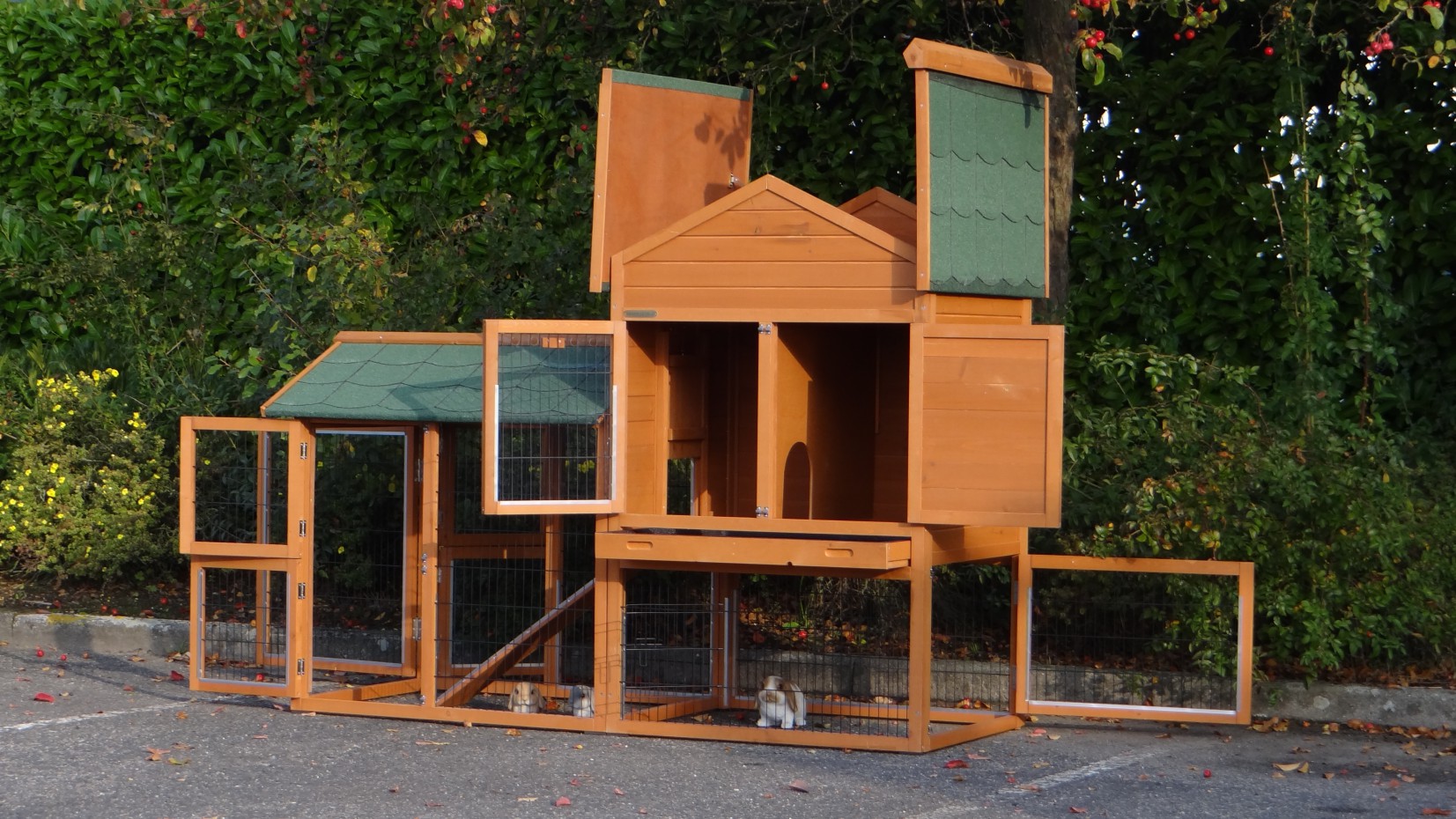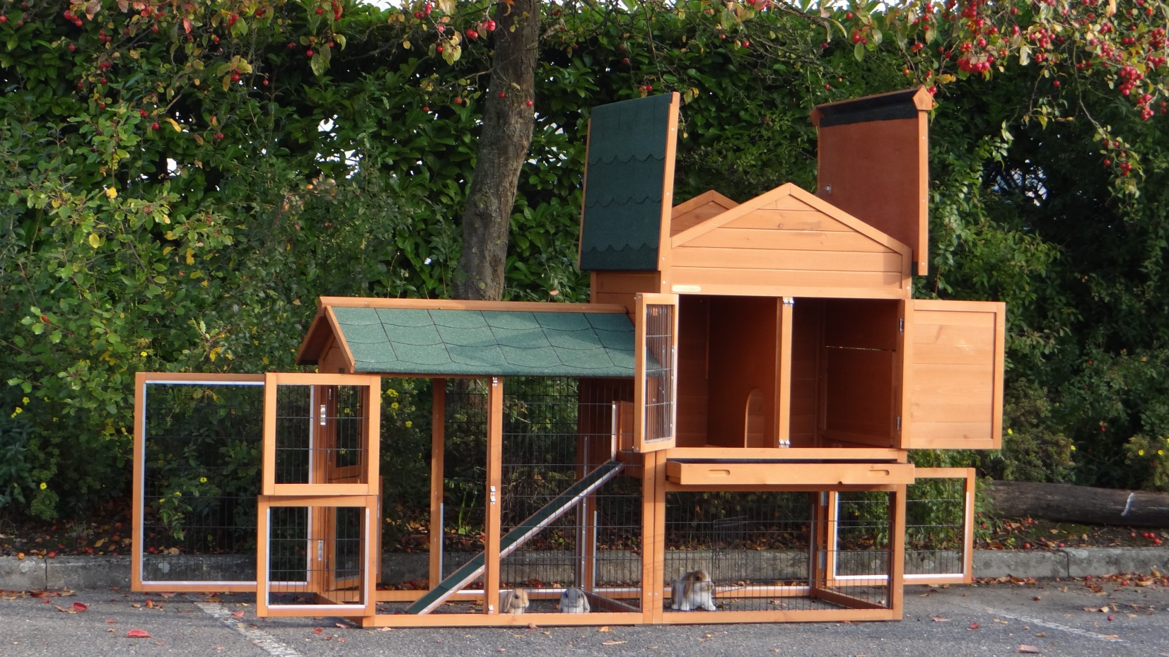 - Die Türen dieses Kaninchenstalls sind mit Doppelschlössern ausgestattet.