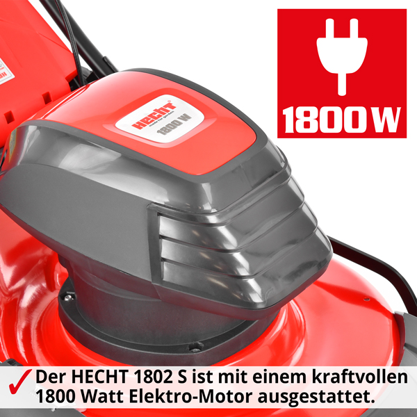 Lassen auch Sie sich von den hervorragenden technischen Komponenten, der Funktion und dem Komfort des HECHT 1802 S begeistern! Der 5-in-1 Elektrorasenmäher sorgt mit seiner leistungsstarken Performance und benutzerfreundlichen Bedienung für Freude bei der Gartenarbeit.