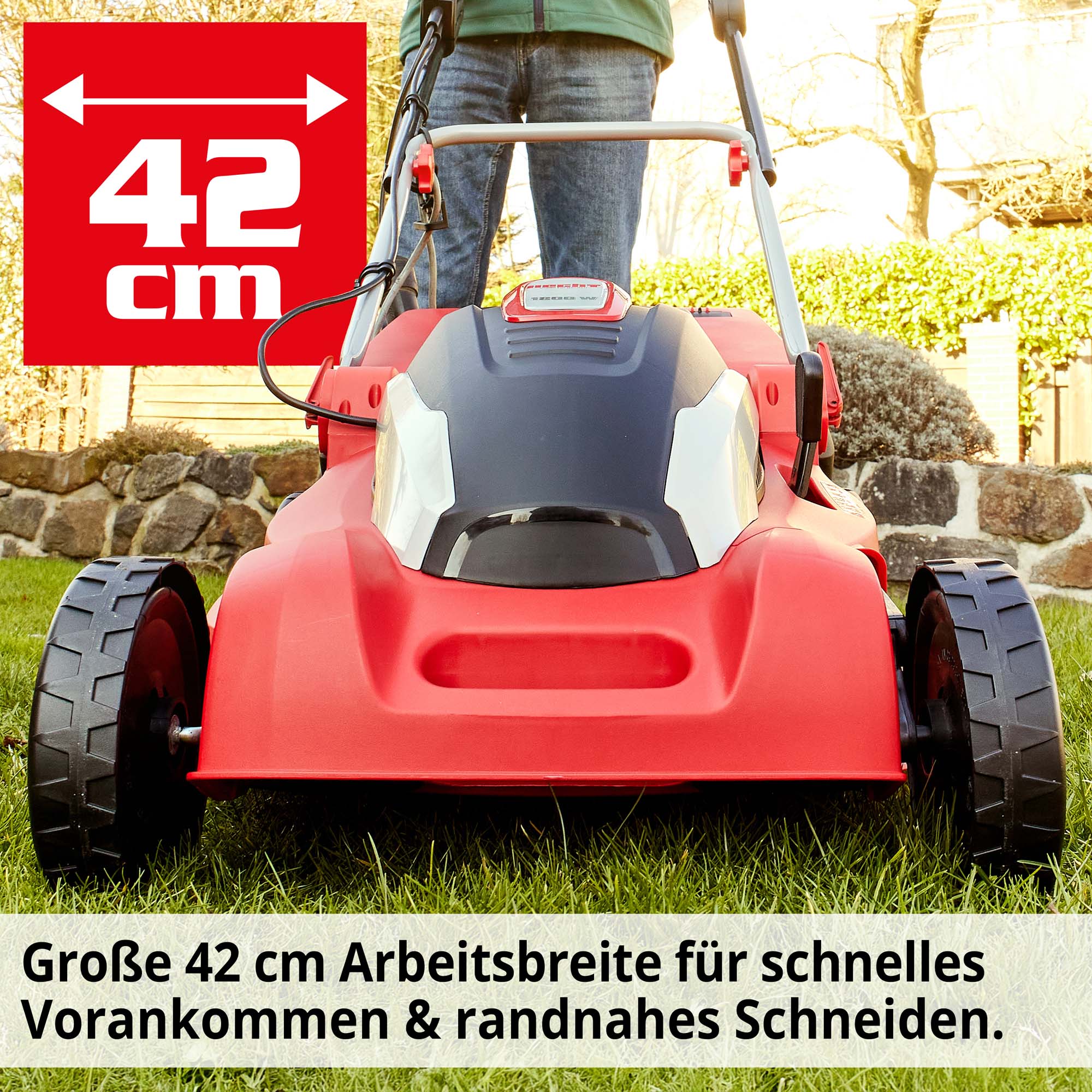 • Die Schnittbreite von 42 cm ermöglicht schnelles Arbeiten auch auf größeren Flächen.