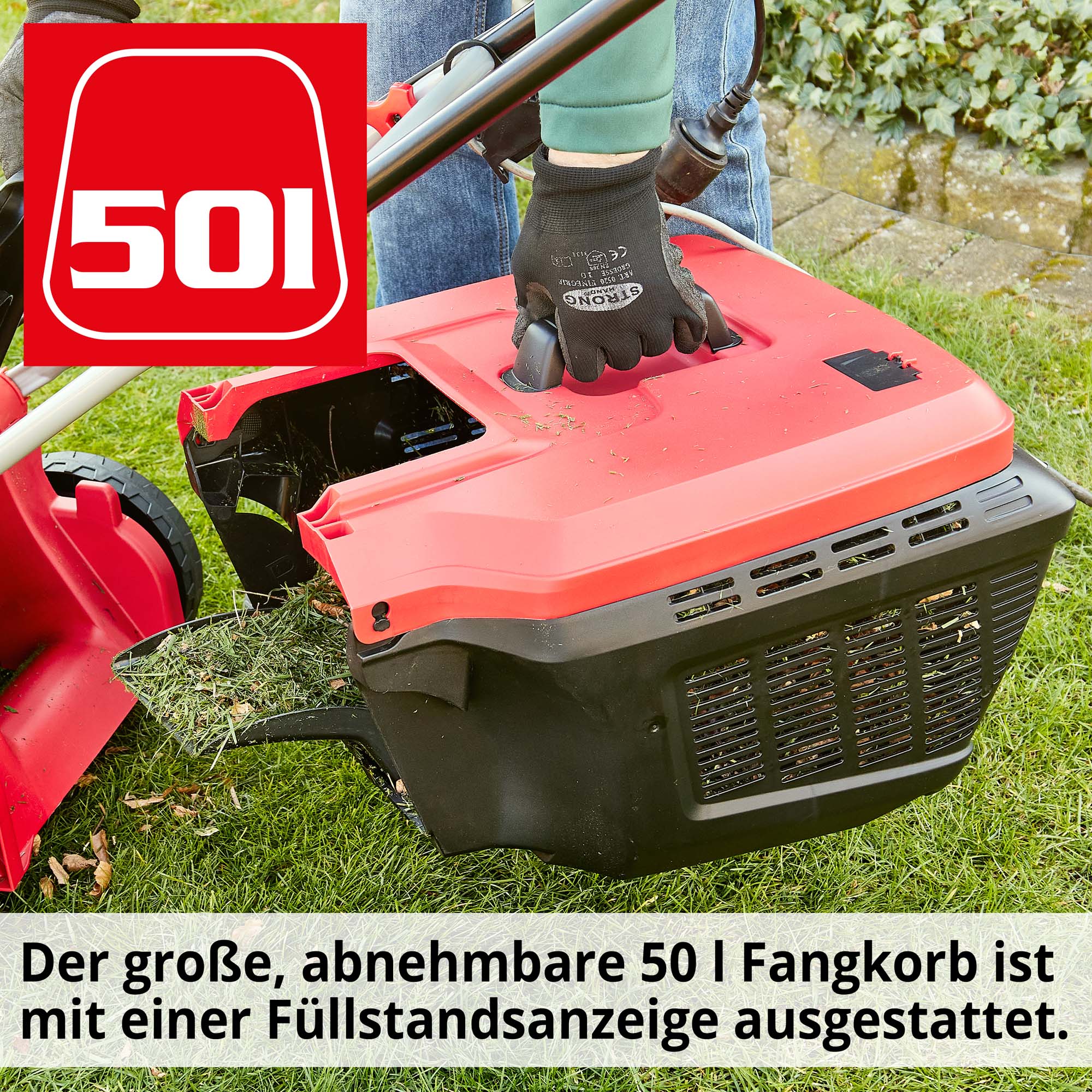 • Großzügiger Grasfangkorb mit einem Volumen von 50 Litern.