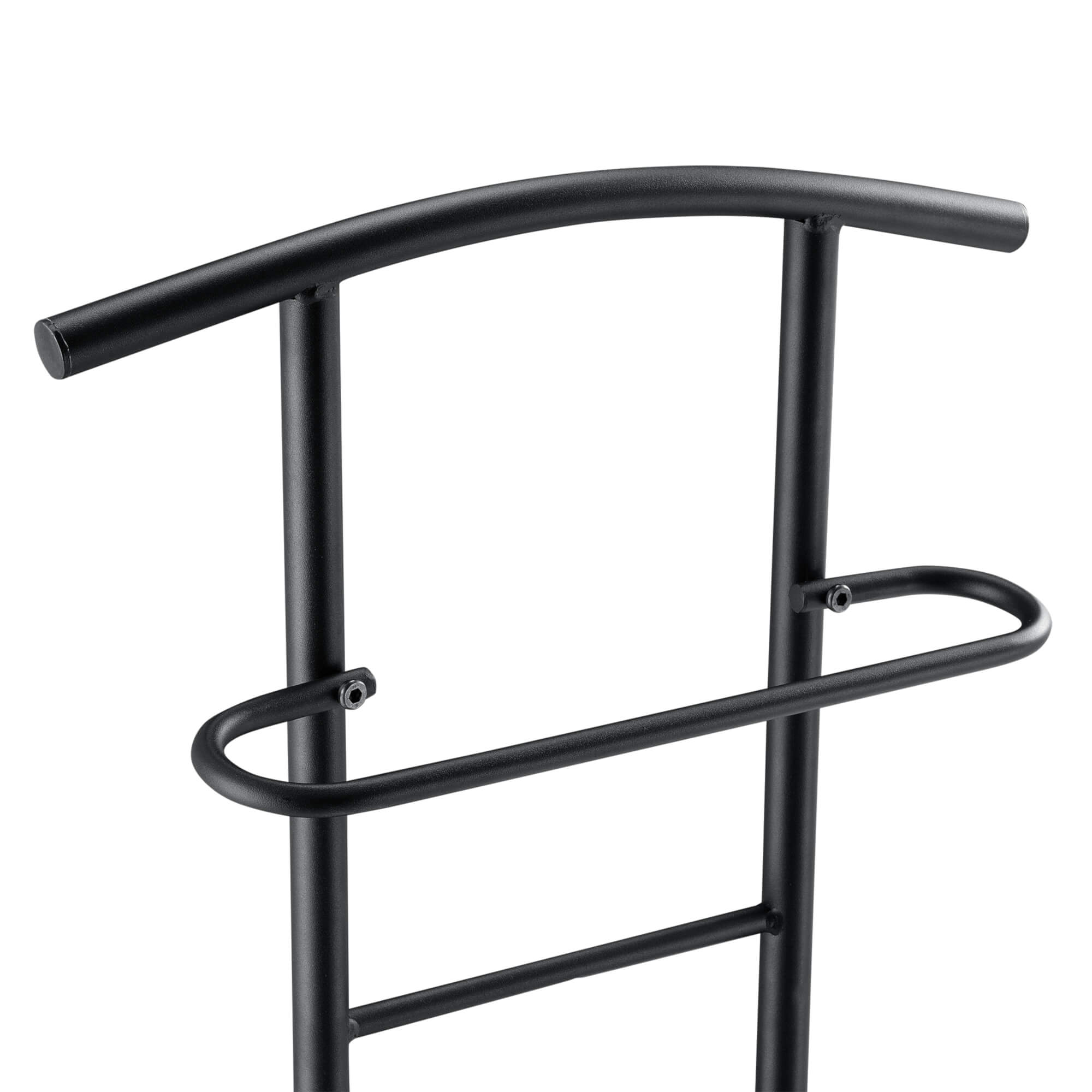 Der praktische Garderoben-Stuhl eignet sich ideal um beispielsweise Hemden, Hosen und Jackets knitterfrei abzulegen und stets griffbereit zu haben, ohne lange im Kleiderschrank suchen zu müssen. Der Stuhl verfügt über einen Hosenhalter und einen Kleiderbügel.