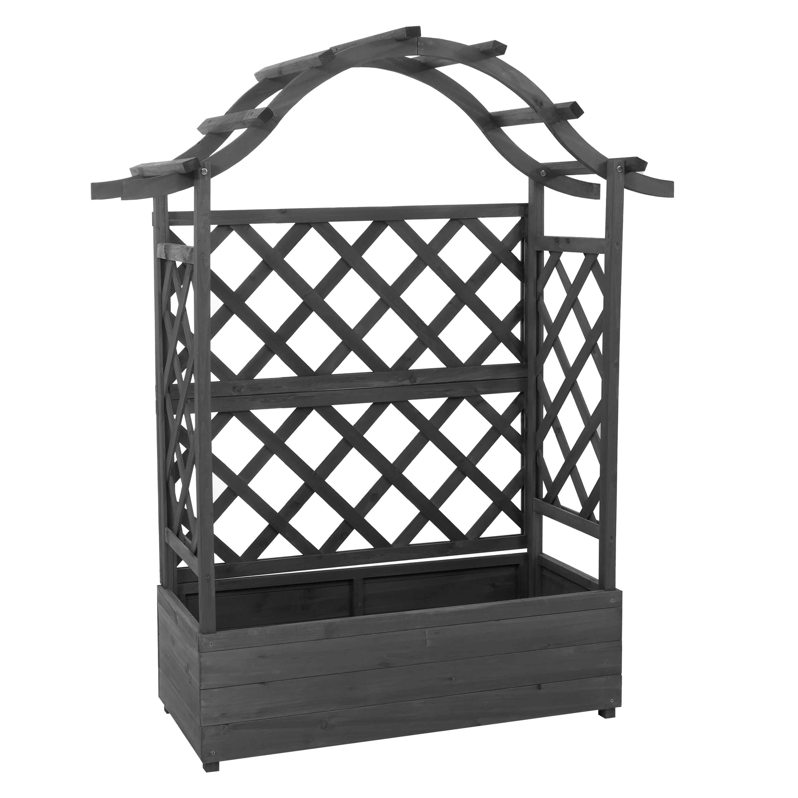 Ob für einen üppigen Kräutergarten. eine bunte Blumeninsel oder duftende Rankpflanzen wie Efeu. Clematis oder Duftwicken – dieses Hochbeet lässt sich ganz nach Ihren Wünschen bepflanzen und verwandelt Ihren Außenbereich in eine persönliche Wohlfühloase. Das praktische Spalier bietet Kletterpflanzen optimalen Halt und sorgt für einen attraktiven. grünen Sichtschutz.