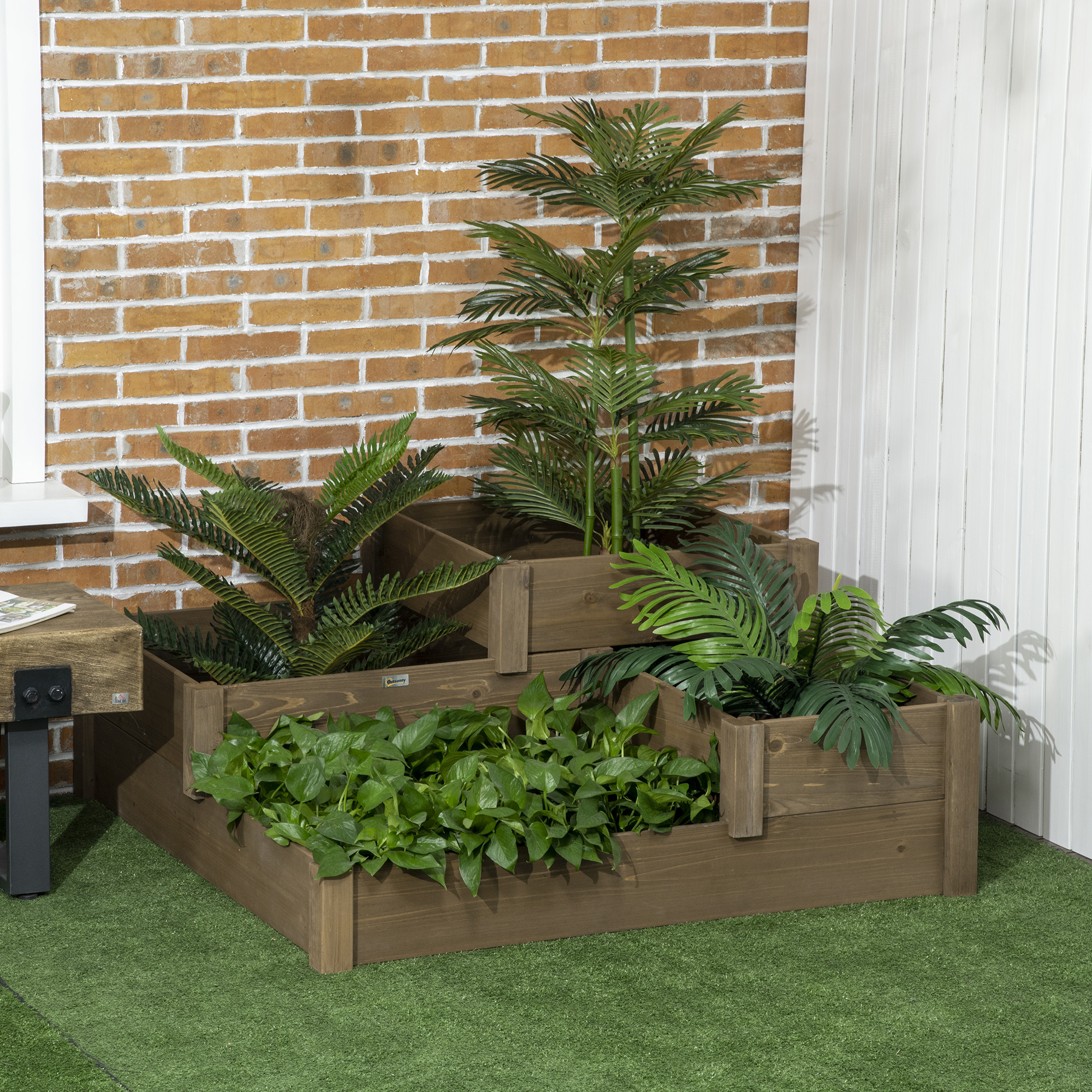 - Dreistufiges, erhöhtes Design, das reichlich Platz für Blumen, Kräuter oder Gemüse bietet