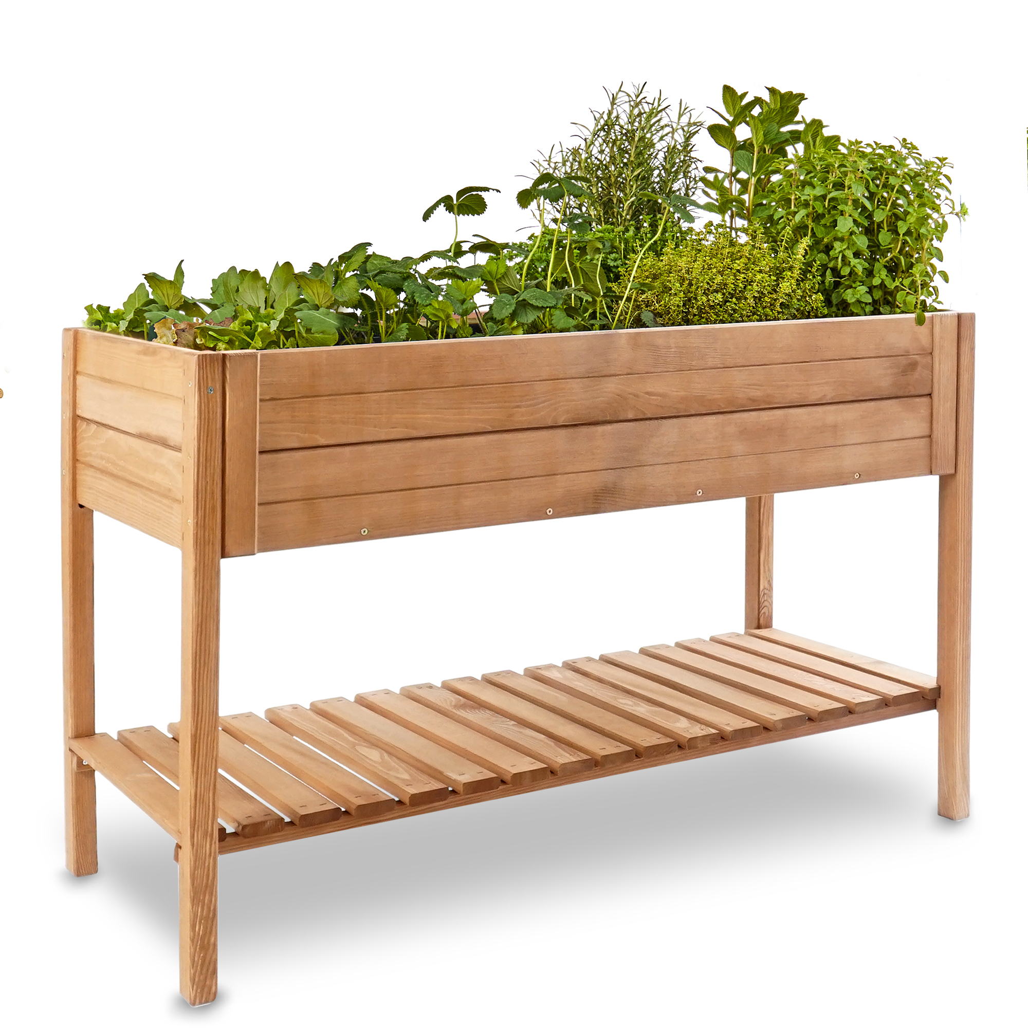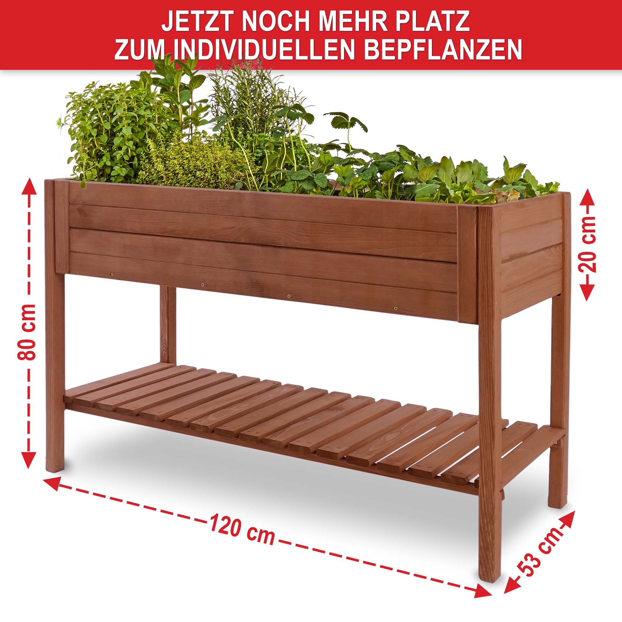 Das Hochbeet „Clara“ mit praktischer Ablagefläche ist die ideale Lösung für alle, die Obst, Gemüse, Kräuter oder Blumen mühelos anbauen möchten. Dank der ergonomischen Höhe wird rückenschonendes Arbeiten ermöglicht, während die wetterfeste Holzlasur für eine lange Lebensdauer sorgt. Perfekt für Garten, Balkon oder Terrasse!