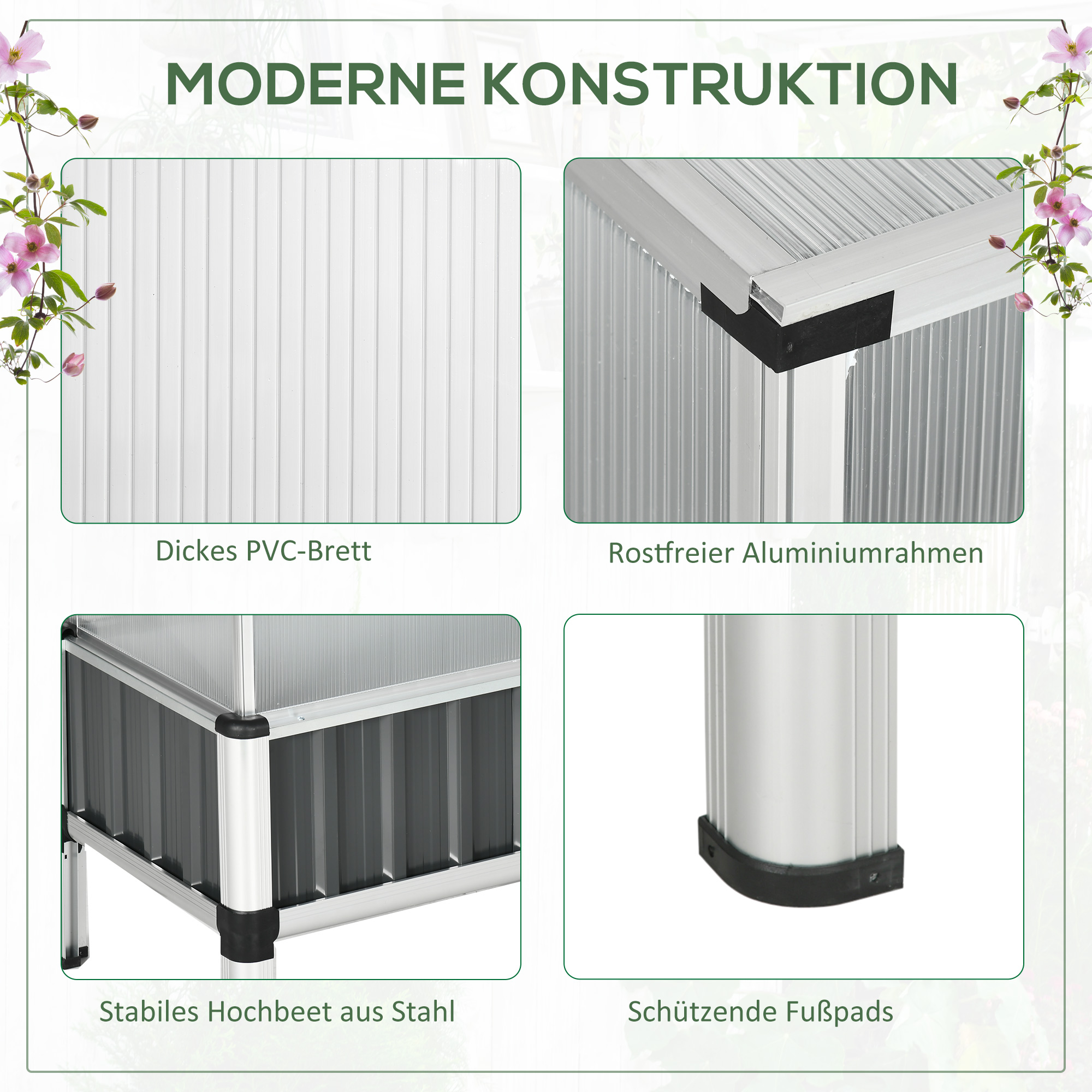 Der Anbau von Pflanzen, Gemüse und Kräutern wird mit diesem Hochbeet von Outsunny zum Kinderspiel. Das erhöhte Design ermöglicht, dass Sie sie in einer benutzerfreundlichen Höhe das Beet bepflanzen können. Der Aufsatz hält die ideale Temperatur im Inneren und dient als Schutz bei schlechtem Wetter. Das große Hochbeet bietet viel Platz für unterschiedliche Pflanzen. Verlängern Sie jetzt die Wachstumsperiode ihre Pflanzen mit diesem Hochbeet mit Aufsatz von Outsunny.