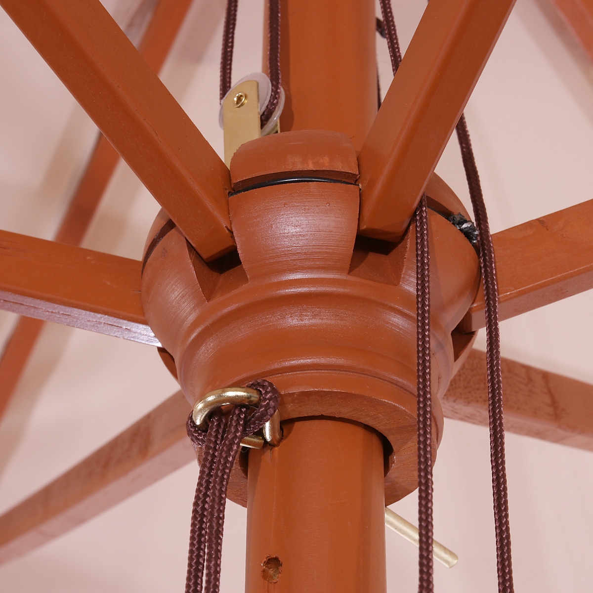 Es besteht – wie bei allen Schirmen – die Gefahr, dass die Holzstreben sich verkeilt haben. In diesem Fall bitte vor dem Öffnen unter den Schirm greifen und die Holzstreben wieder korrekt anordnen. Im Anschluss lässt sich der Schirm leicht entfalten.