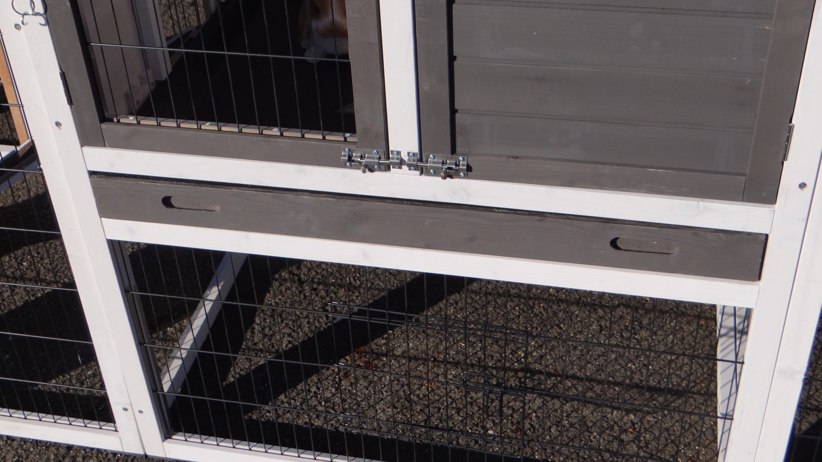 • Dieser Stall ist mit extra stabilen schwarz beschichteten Gittern ausgerüstet.