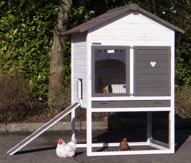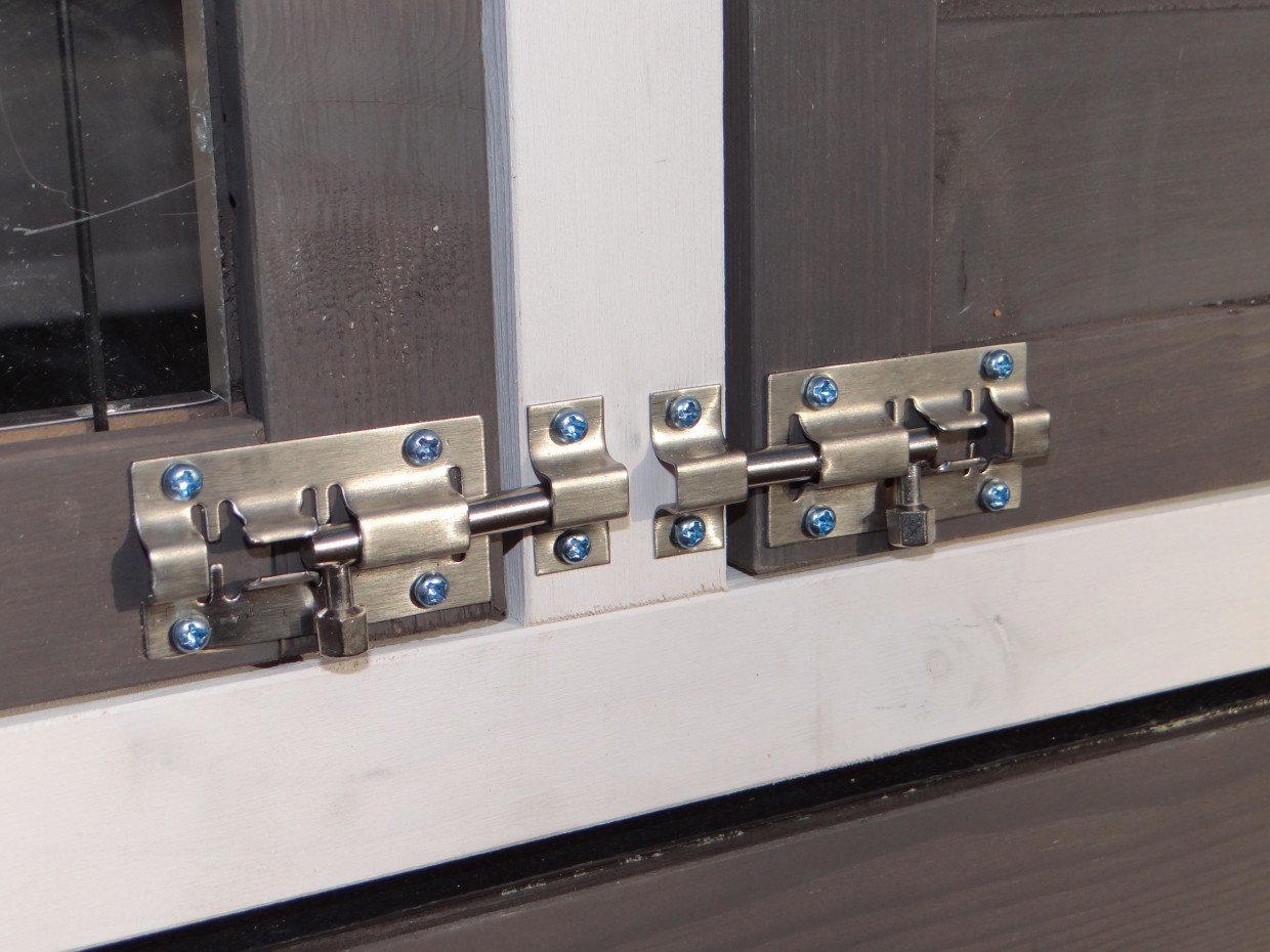 • Die Türen dieses Hühnerstalls sind mit Doppelschlössern ausgerüstet.