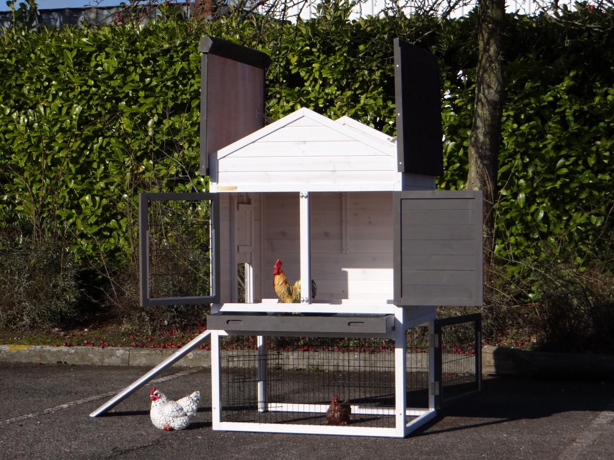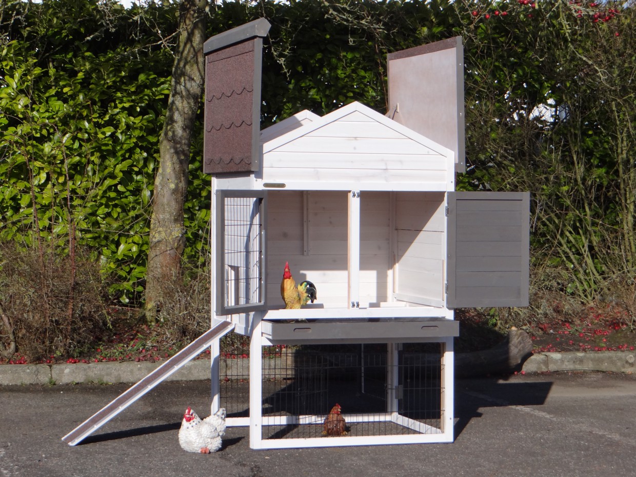 • Dieser Hühnerstall ist mit großzügigen Türen für optimale Zugänglichkeit ausgestattet.