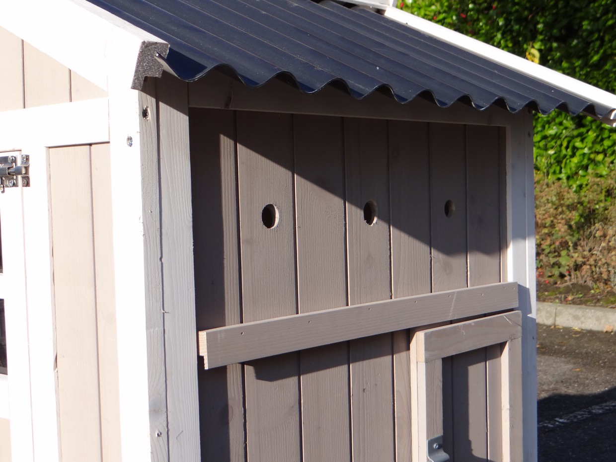 Dieser Stall eignet sich nicht als alleiniger Hühnerstall und muss gemäss den BLV Vorgaben auf eine gedeckte Fläche von 2m2 erweitert werden.
