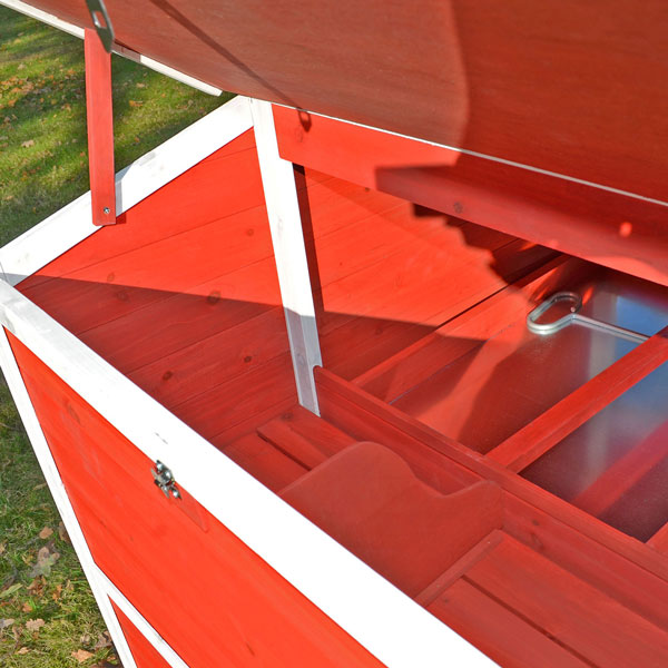 Der große Nistkasten hat einen Deckel, der von außen bequem zu öffnen ist. So können Sie die Eier ganz einfach entnehmen und den Nistkasten reinigen.