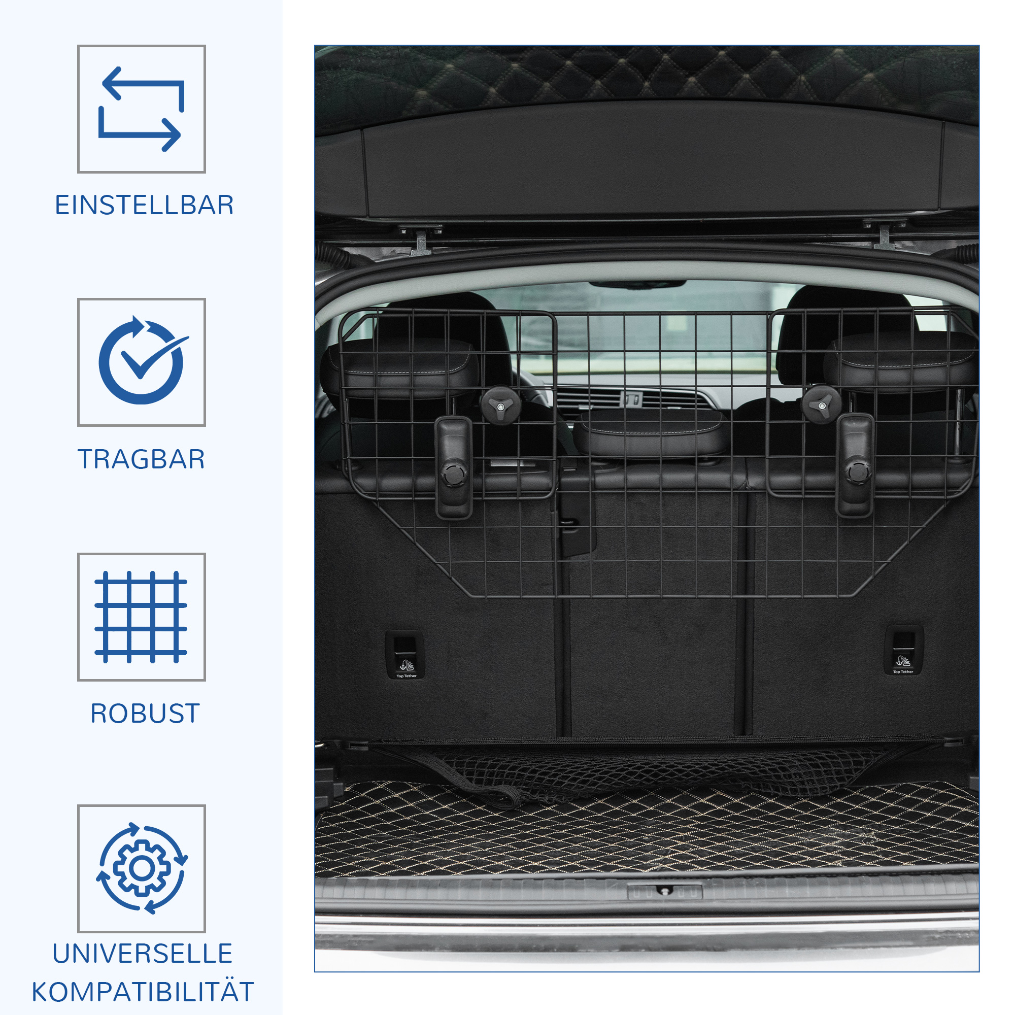 Mit diesem stabilen Trenngitter können Sie Ihr Haustier sicher im Auto transportieren. Damit Sie das Gitter unabhängig von der Größe Ihres Fahrzeugs verwenden können, haben wir dieses größenverstellbare Gitter entwickelt. Die Breite lässt sich stufenlos verstellen und kann somit dem jeweiligen Fahrzeug individuell angepasst werden. Nun können Sie ihr Haustier oder auch Gepäck sicher in Ihrem Kofferraum transportieren.