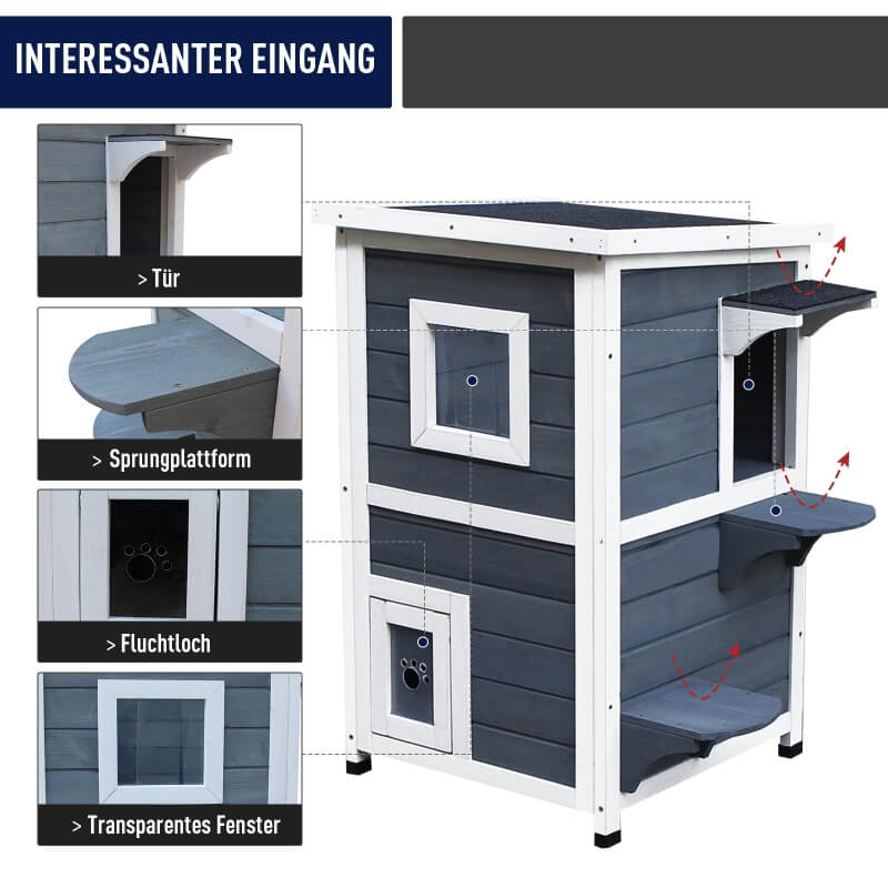 Katzenhaus Katzenvilla Outdoor Katzenhütte 2-Etagen