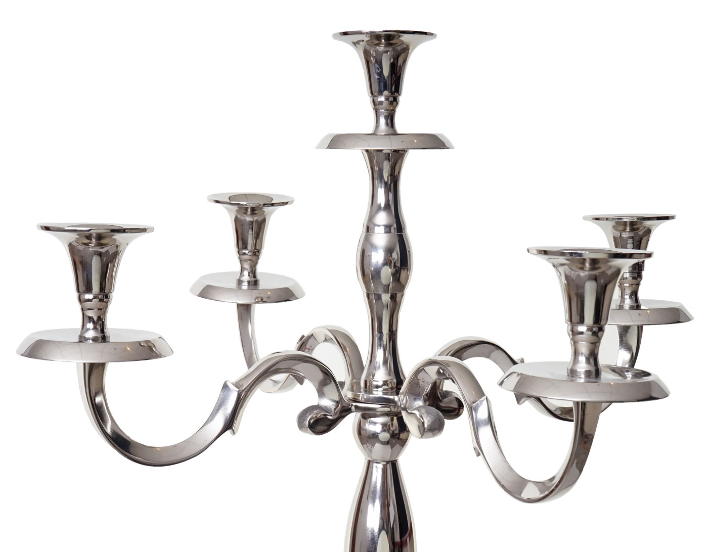 Unsere Kerzenleuchter strahlen mit ihrer stilisierten Barockmanier eine klassische Eleganz aus. Passend kombiniert oder in Szene gesetzt können sie protzig oder schlicht wirken, ganz wie Sie es wünschen. Aus massivem Aluminium gefertigt ist unser 3,6 kg schwerer Kerzenleuchter besonders standfest. Ob nun als exklusive Dekorationsartikel auf einer Messe oder als Blickfang für daheim, dieser Kerzenständer wird sie definitiv glücklich machen.