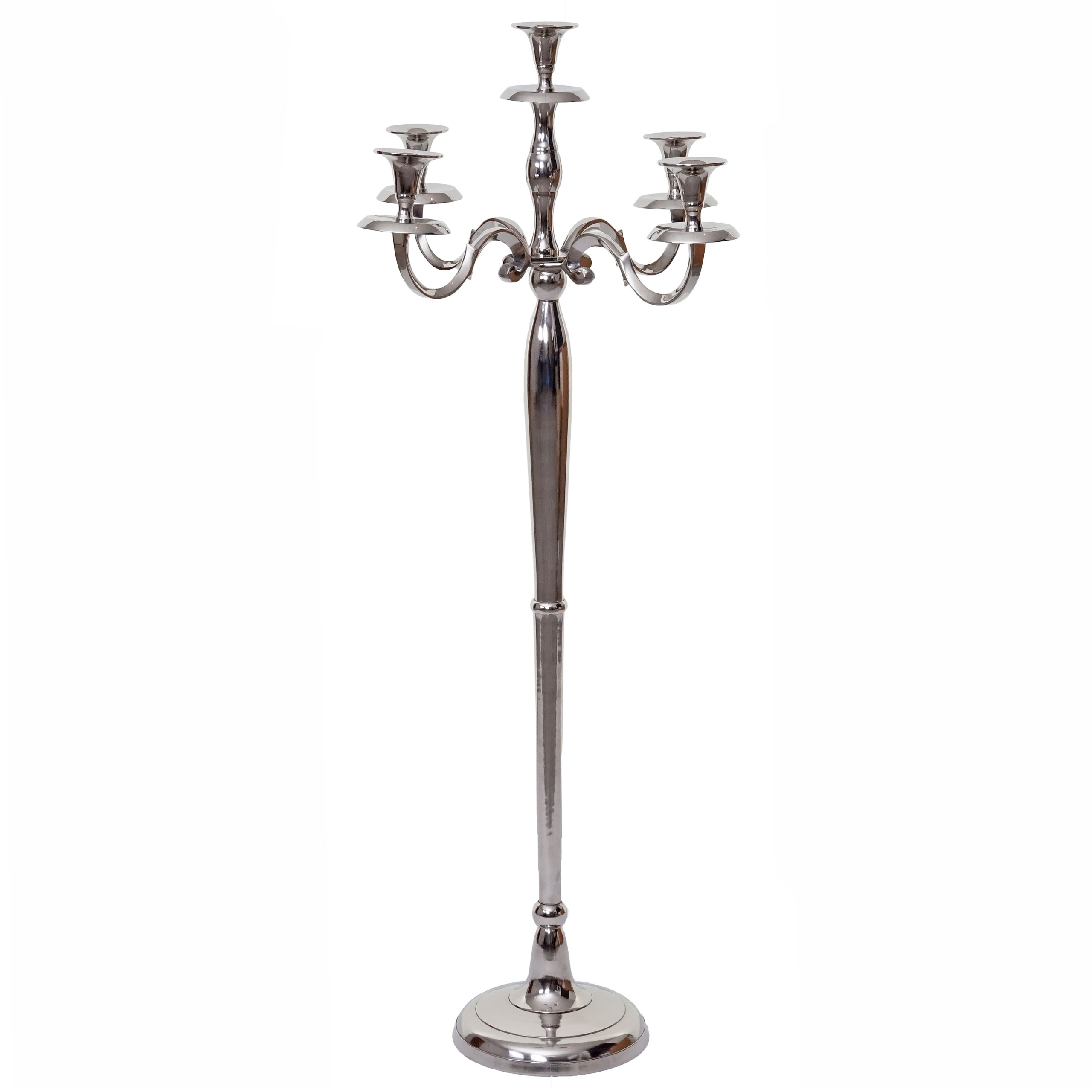 Kerzenständer HWC-D81 5-armig aus Aluminium 118cm massiv 3,6kg ~ Silber