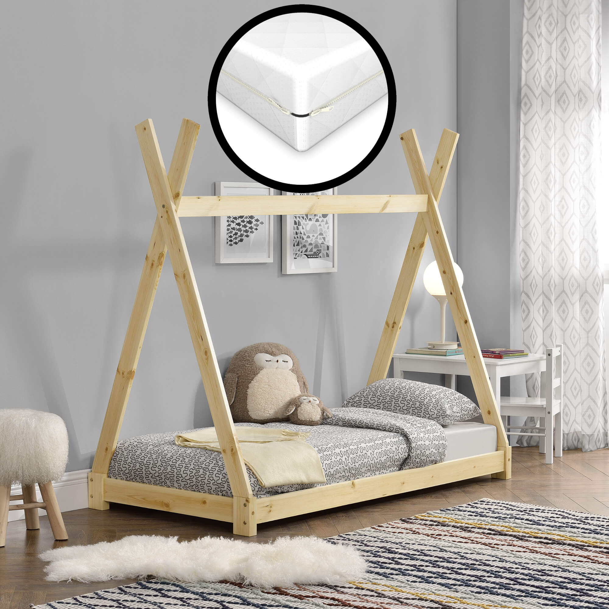 Das stabile Kinderbett aus Kiefernholz verschönert durch seine Optik jedes Kinderzimmer und bietet einen angenehmen Schlafplatz. Die orthopädische Matratze versichert Ihrem Kind einen angenehmen Schlafkomfort und eine hervorragende Unterstützung für Kopf, Nacken, Rücken, Arme und Beine, unabhängig vom Schlafstil. Sie ist allergikergeeignet, atmungsaktiv und verschleißfest.