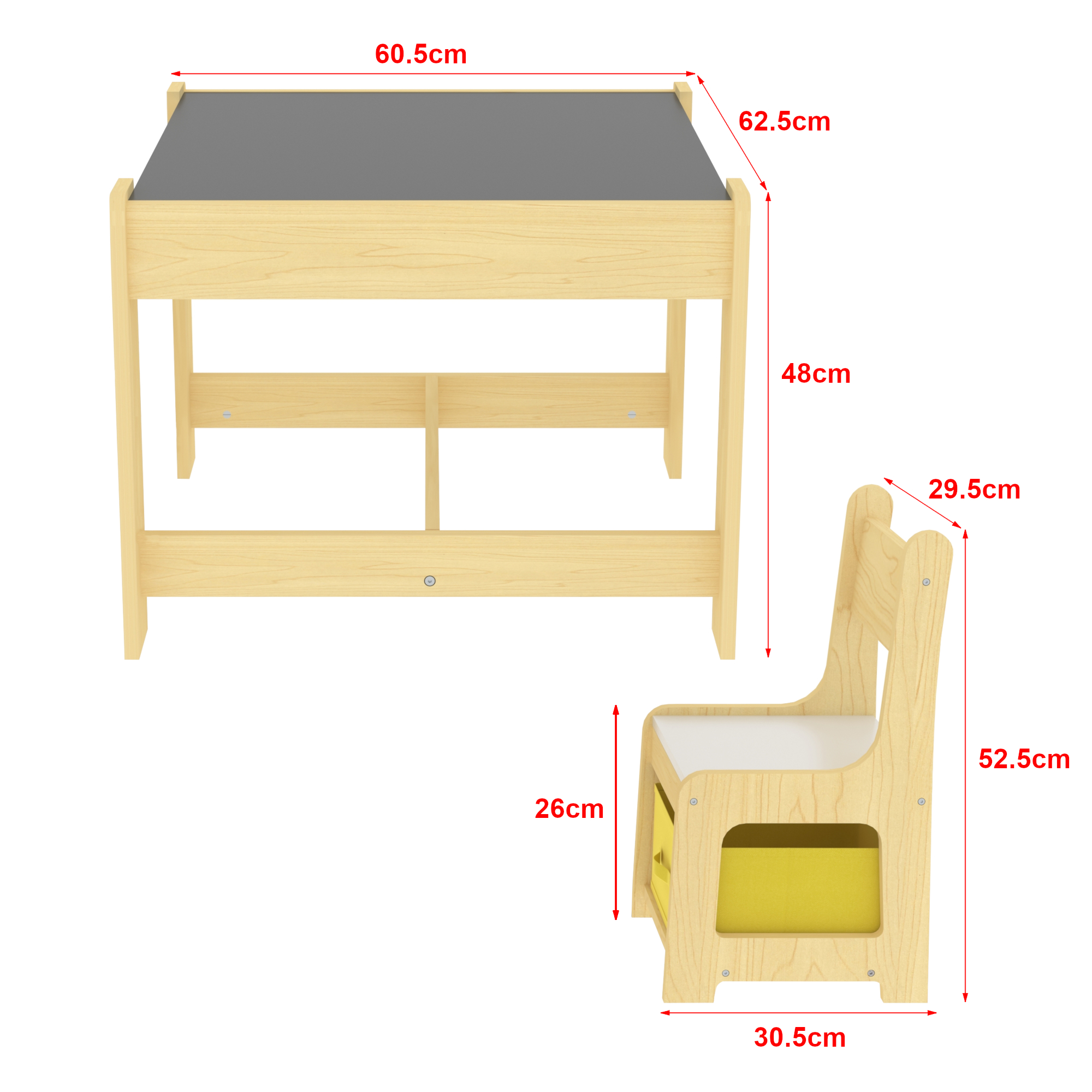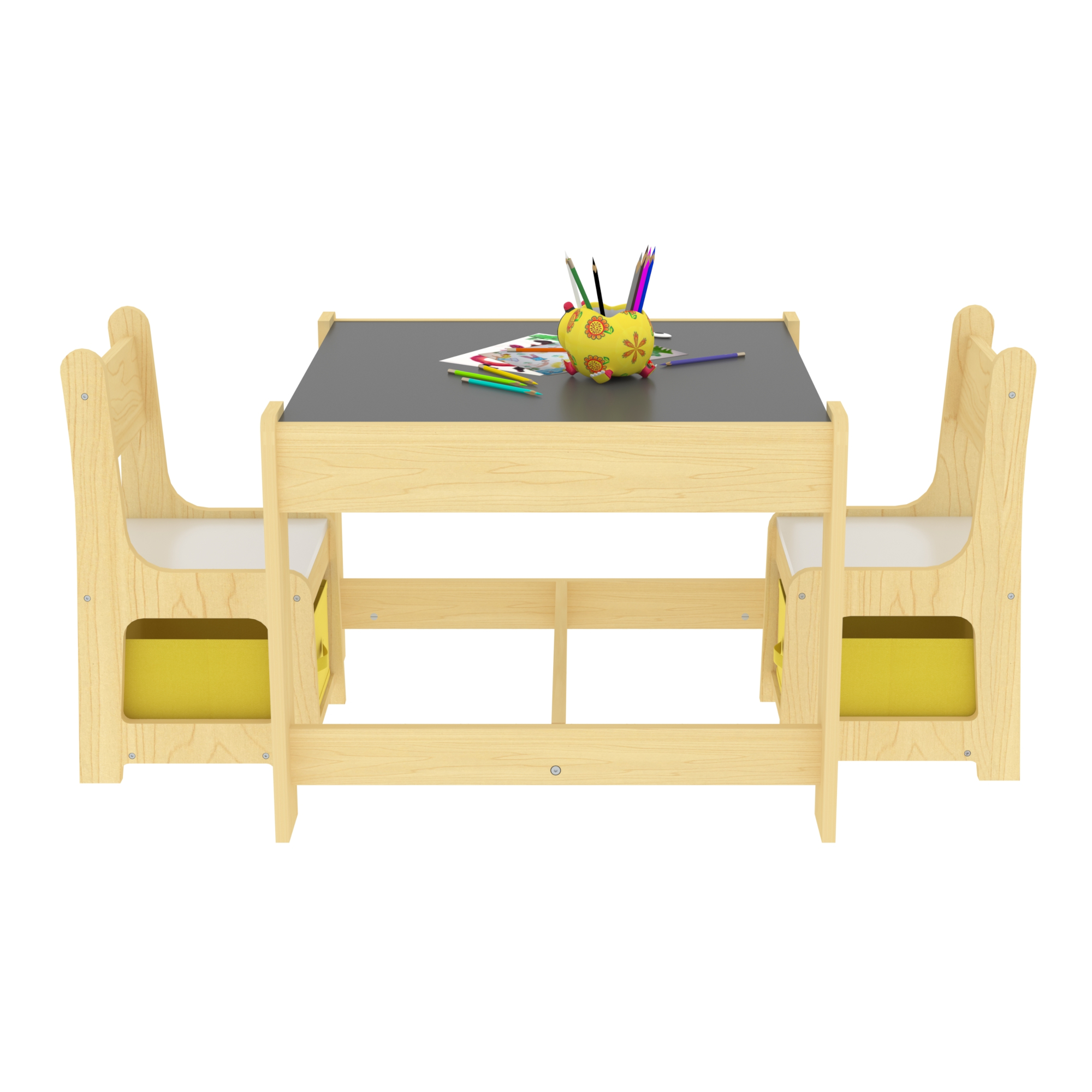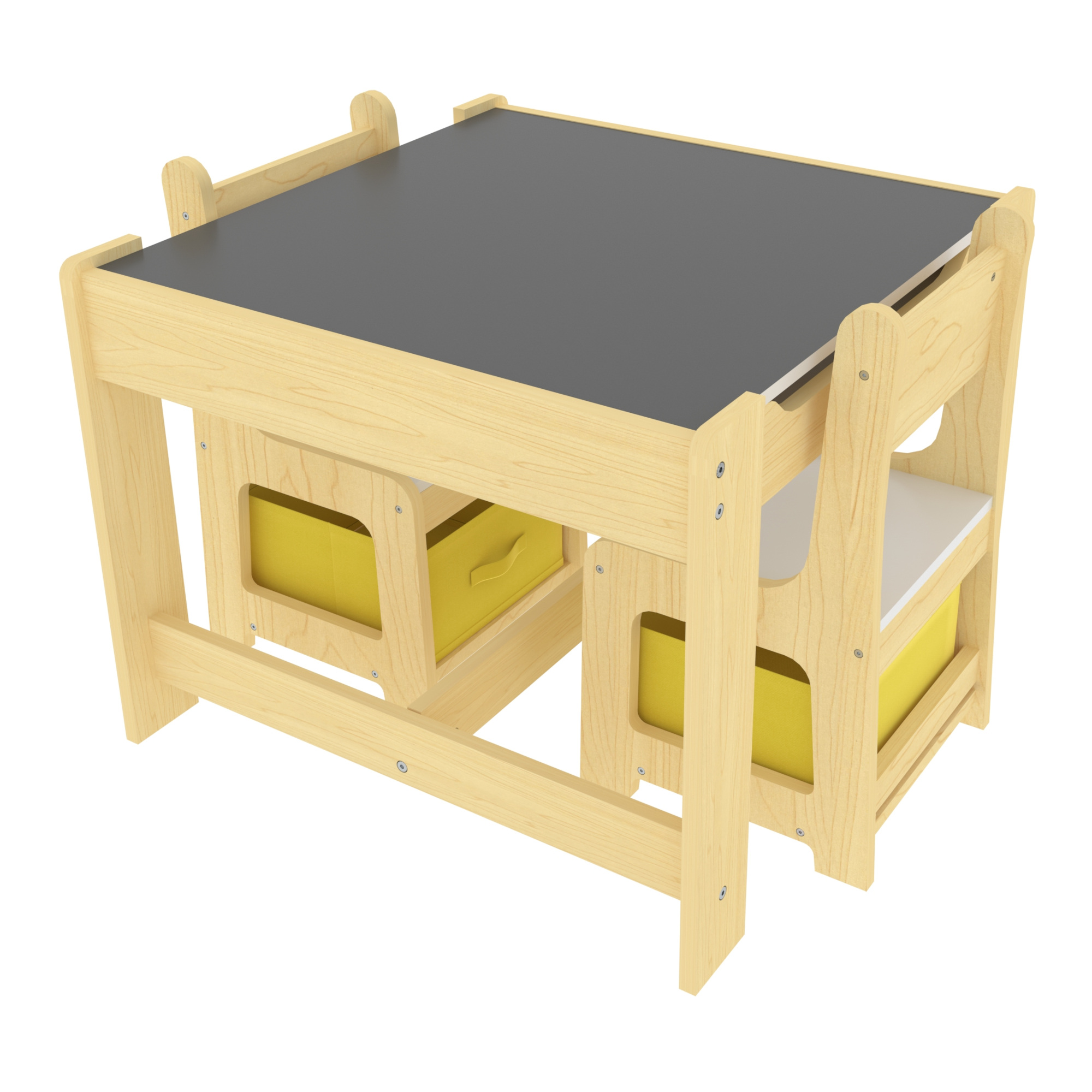 Der Tisch mit 2 Stühlen eignet sich perfekt für jedes Kinderzimmer. Das Staufach unter der abnehmbaren Tischplatte und die 2 mitgelieferten Aufbewahrungsboxen bieten eine Möglichkeit Spielzeuge platzsparend unterzubringen.