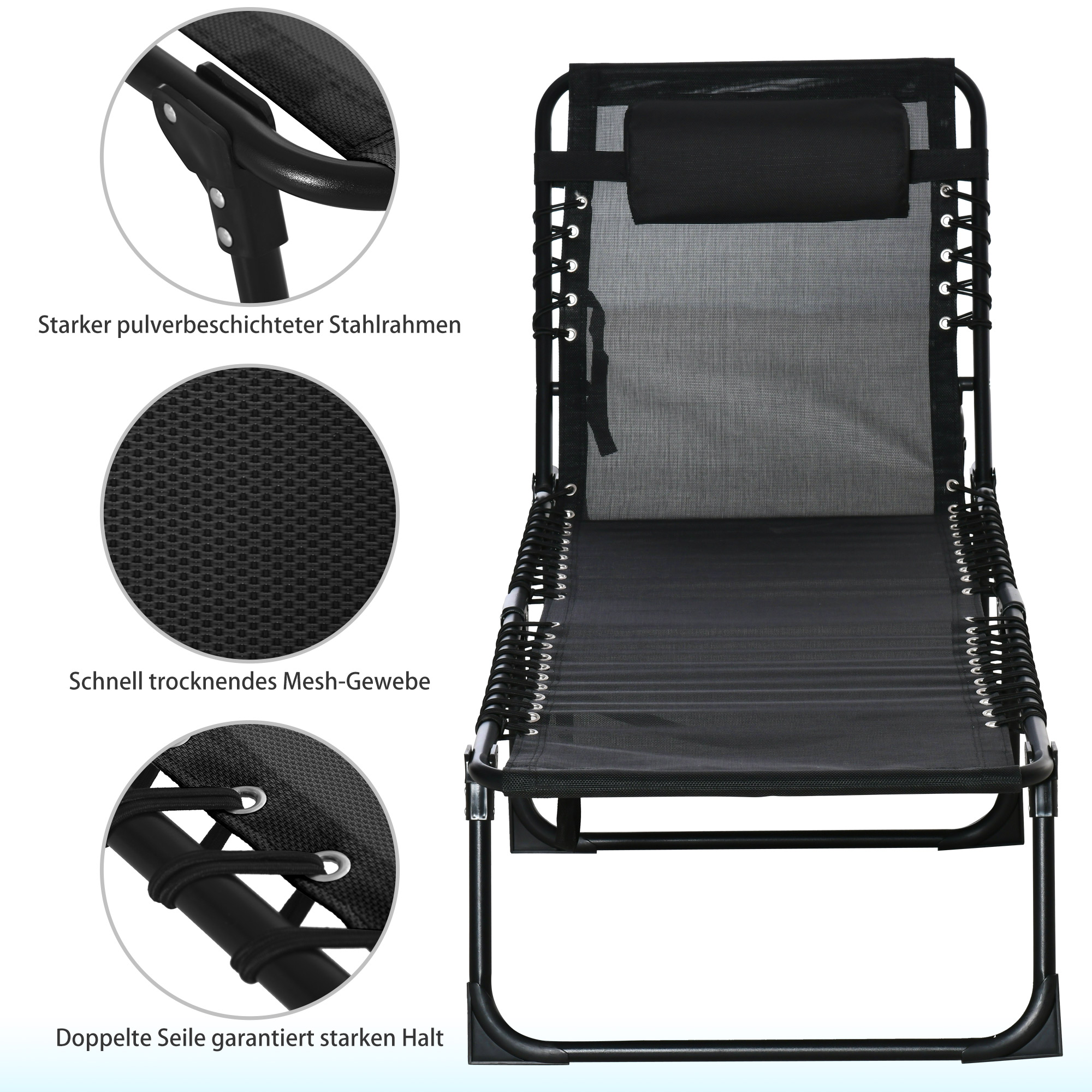 Klappbare Sonnenliege 4-stufig verstellbar Schwarz
