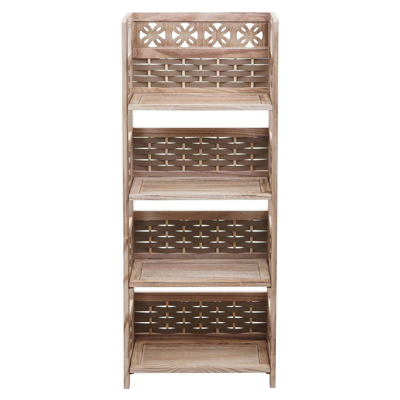 Platzsparendes Klappregal aus Holz mit Polyrattan-Geflecht – Vielseitige Ablage für jeden Raum