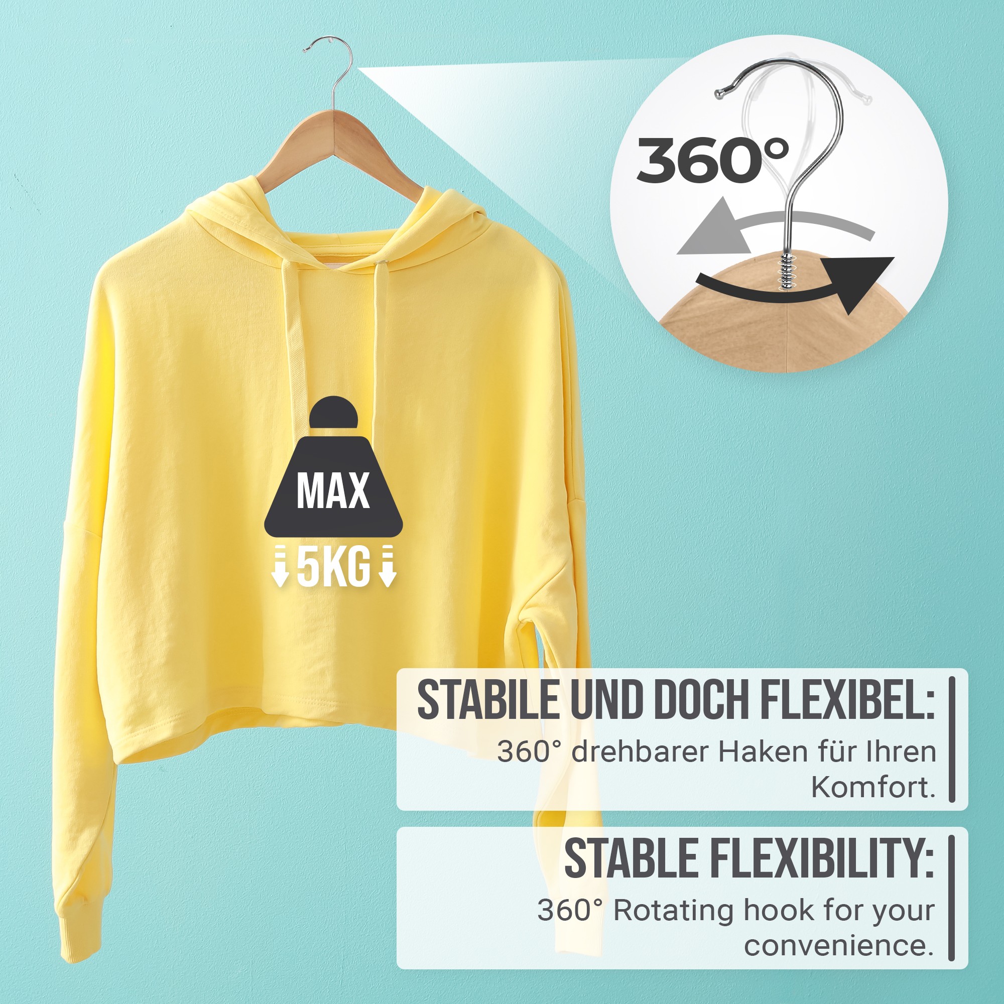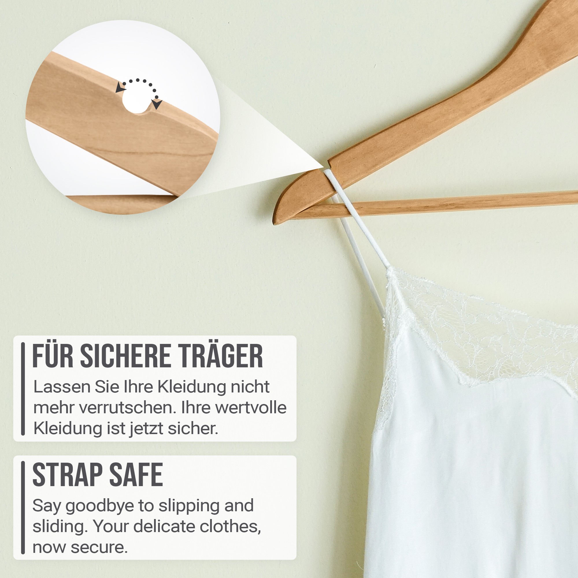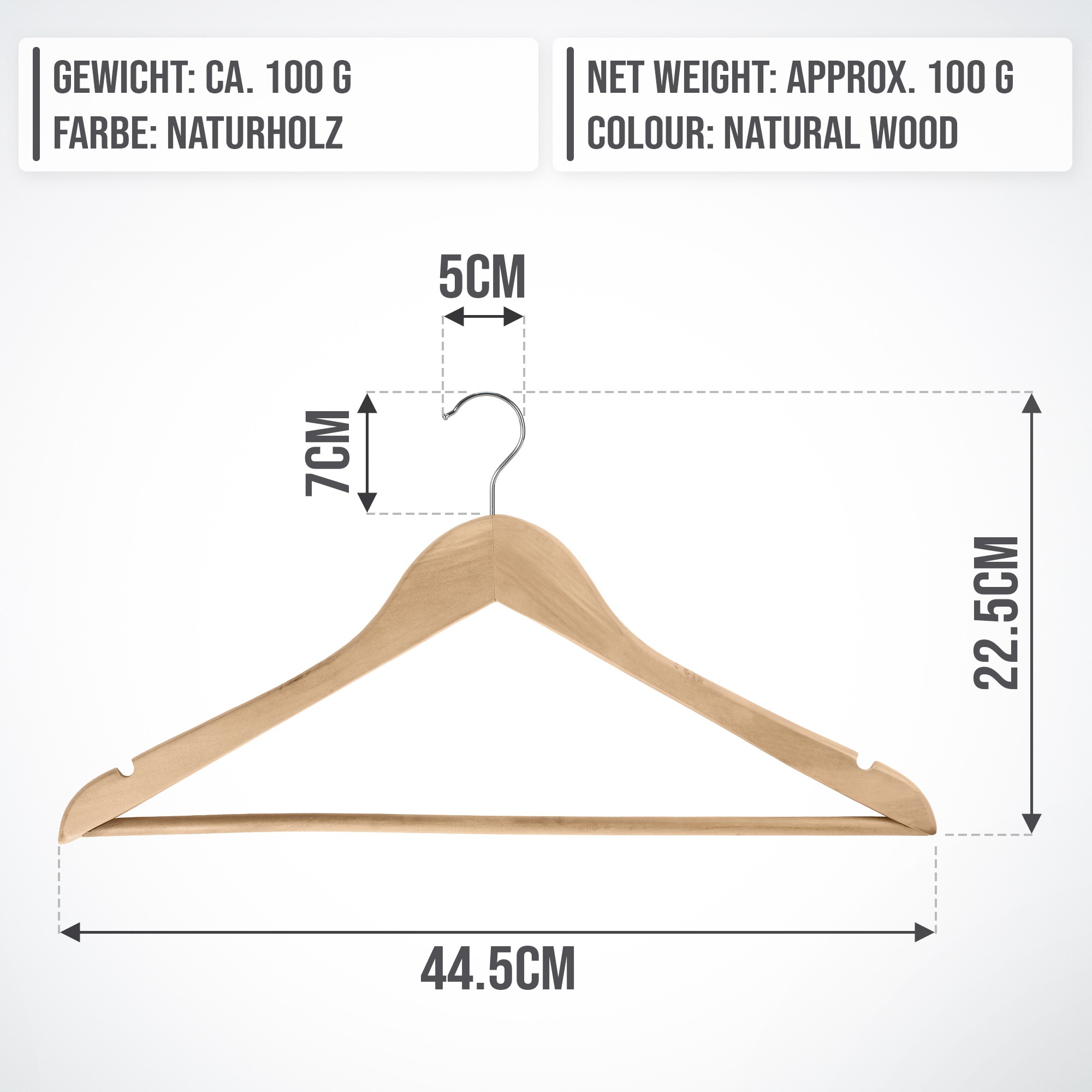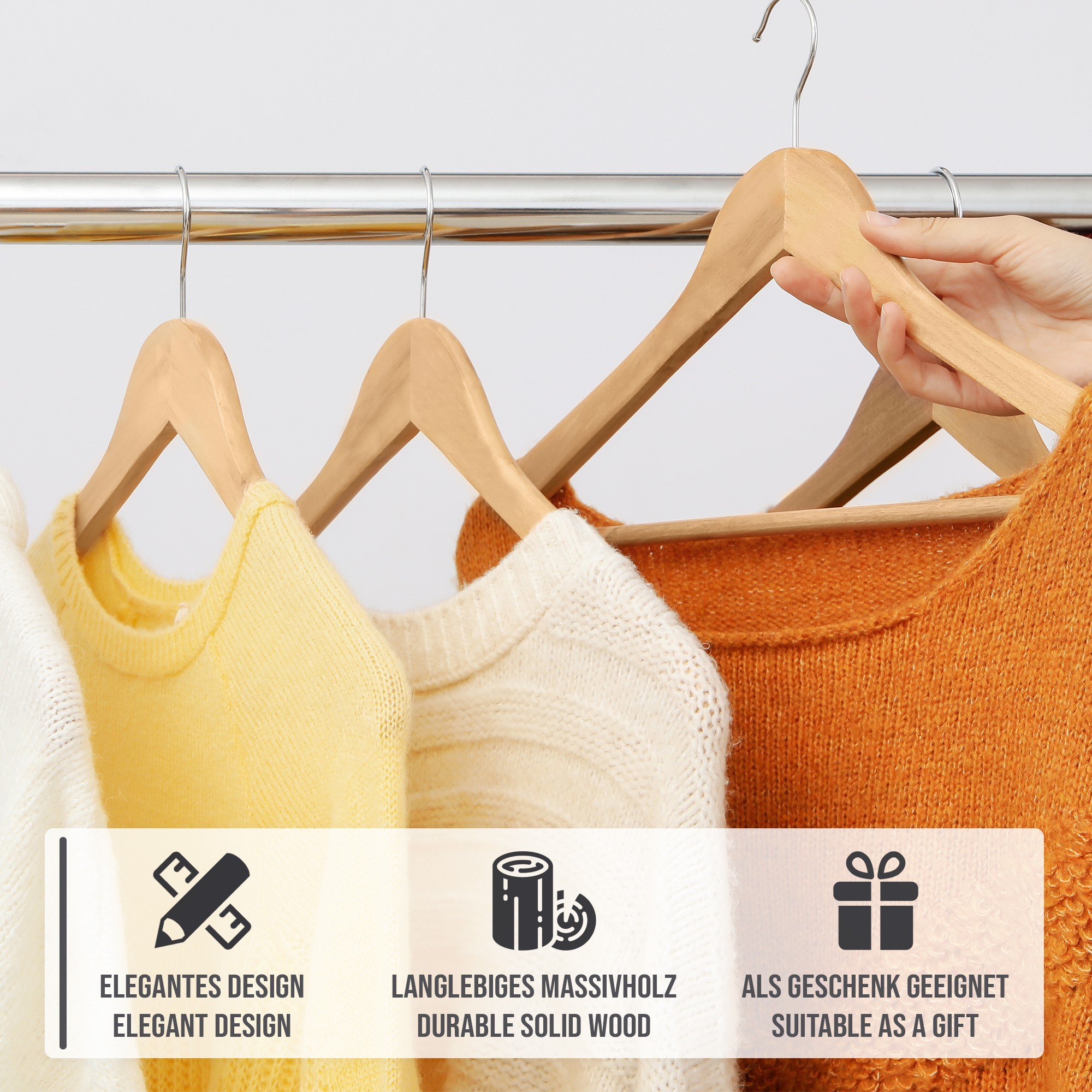 Wir scheinen irgendwie nie genug Kleiderbügel zu haben. Aus diesem Grund bieten wir dieses Set mit dreißig Kleiderbügeln aus Holz an, damit Sie mit der Organisation Ihrer Schränke beginnen können. Dieser Kleiderbügel mit einer Kerbe für Kleidungsstücke mit Riemchen und einer Hosenaufbewahrungsstange ist Ihr idealer Begleiter für eine effiziente Aufbewahrung im Haushalt.
