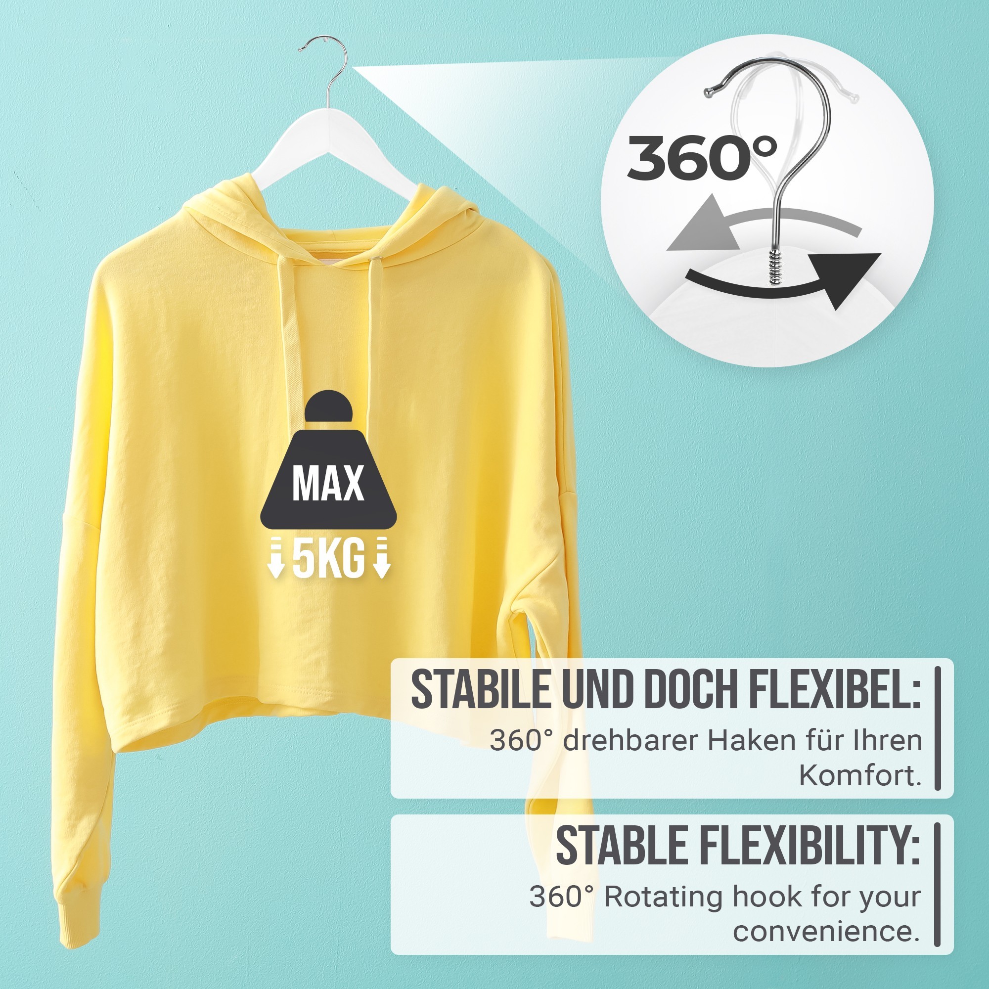 - Der drehbare Metallhaken sichert die flexible Ausrichtung