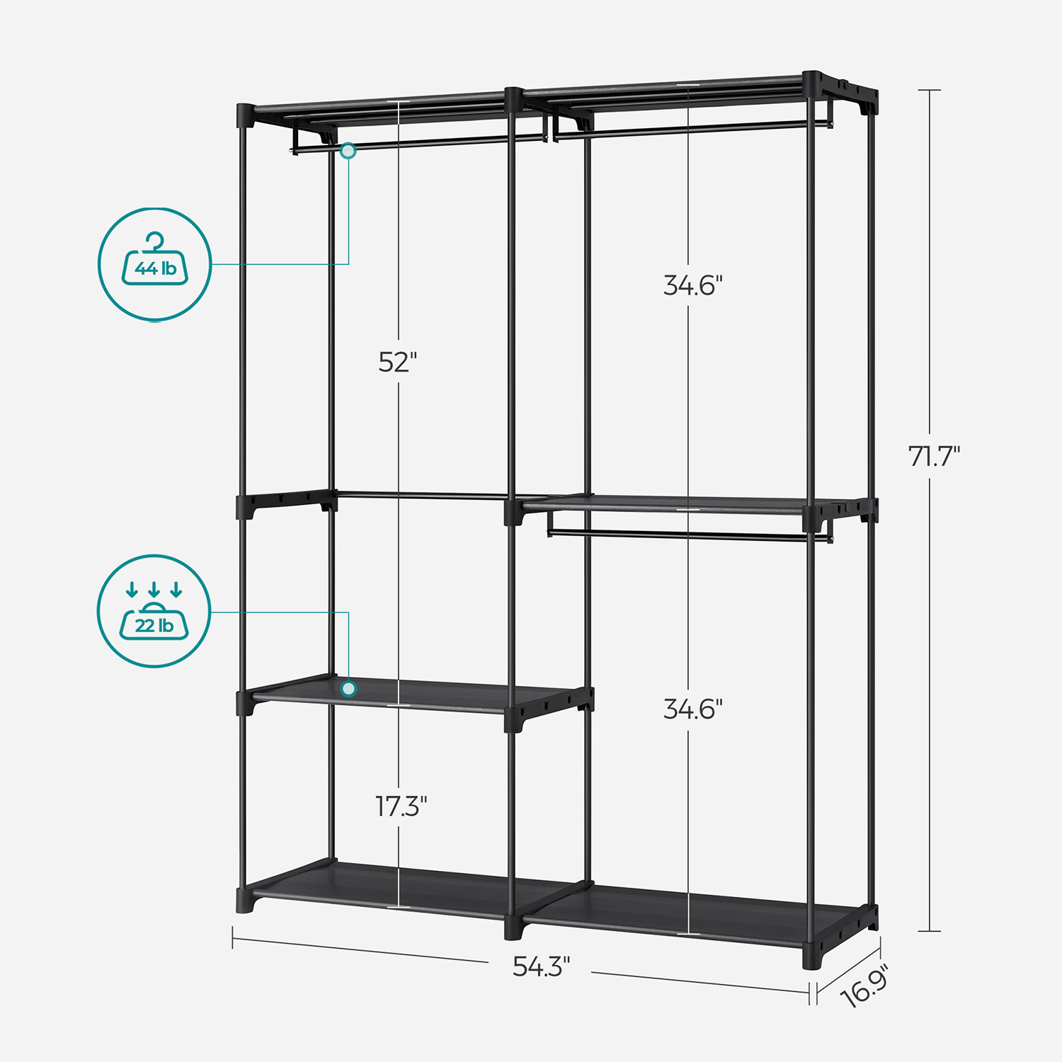 3 Hängefächer und 3 Ablagen für Kleidung & Accessoires.