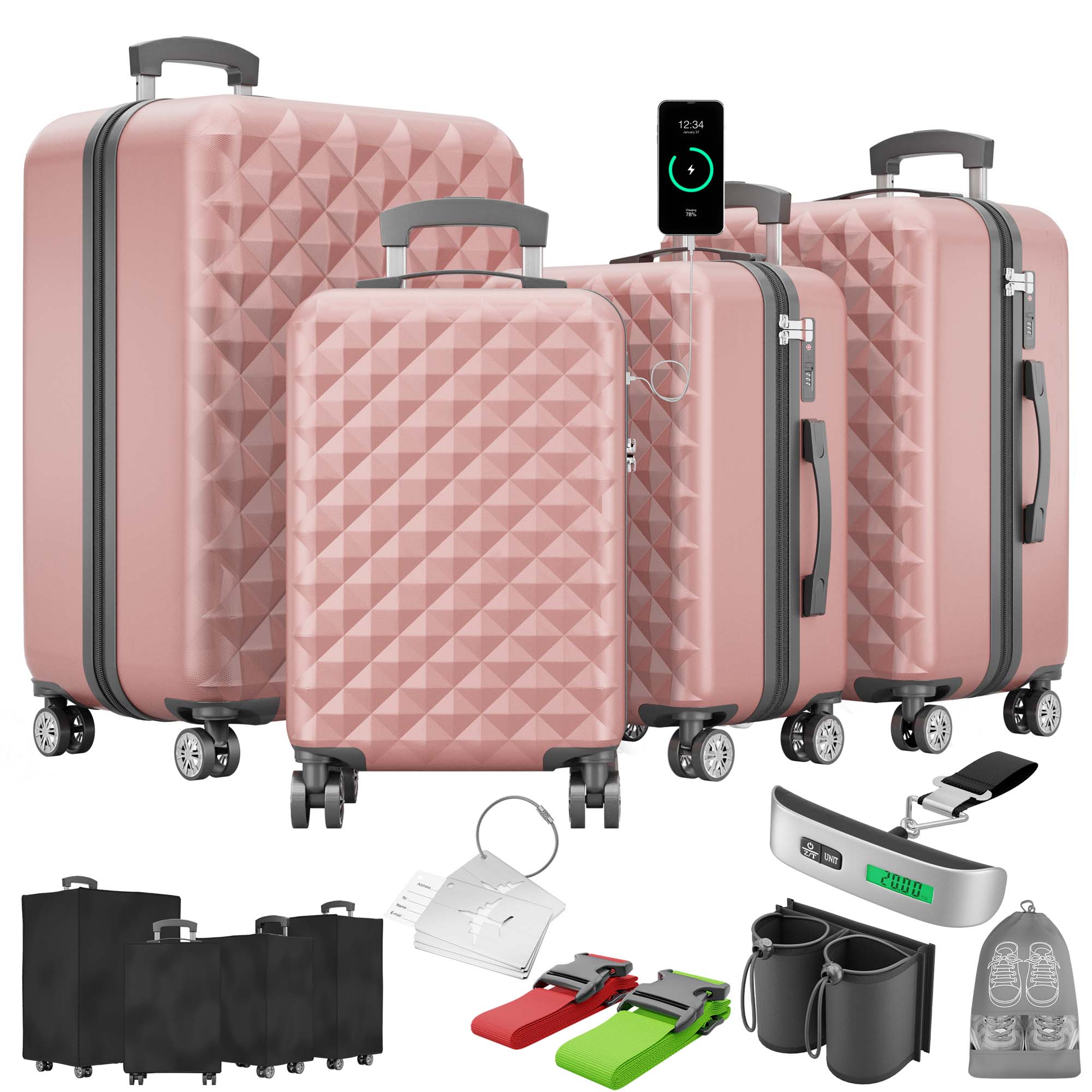 • 1 x Kofferwaage, 2 x Koffergurt, 4 x Gepäckanhänger