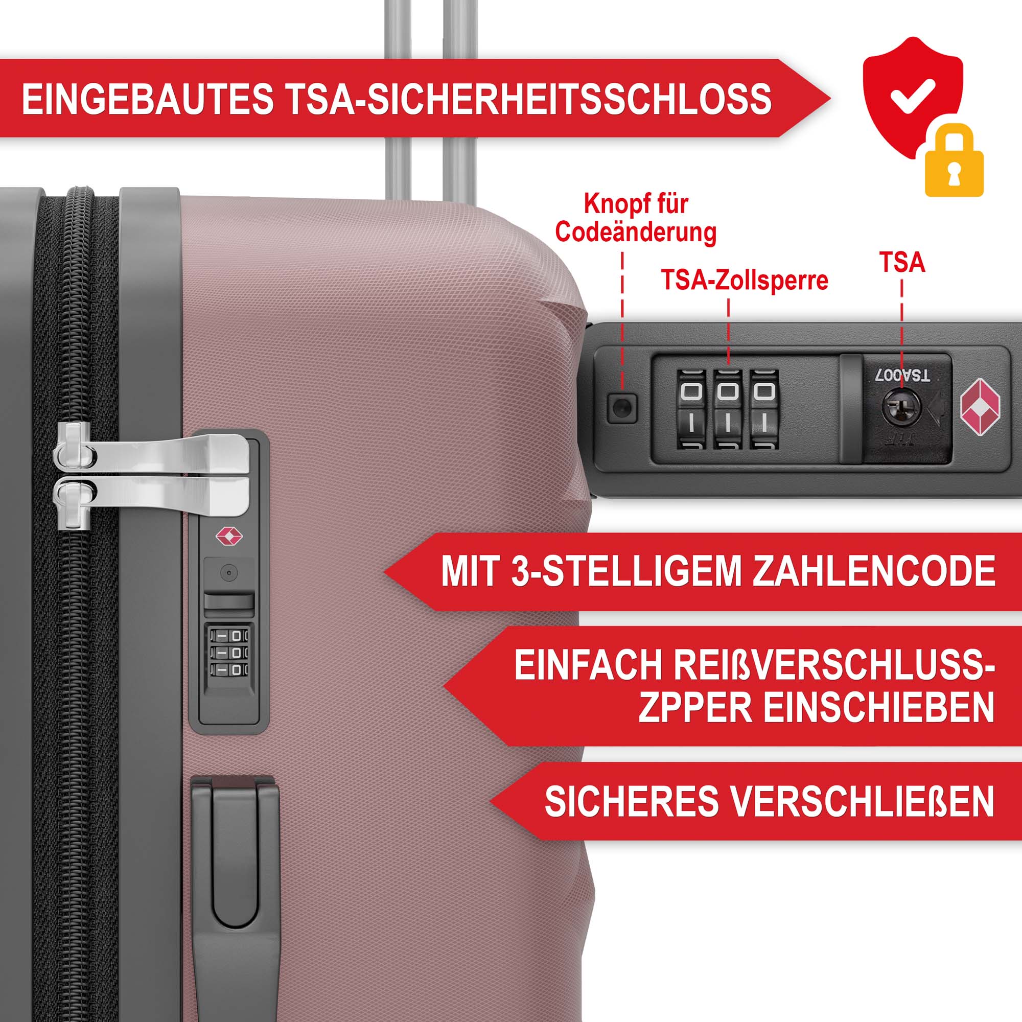 • Integriertes TSA-Sicherheitsschloss für alle Koffer