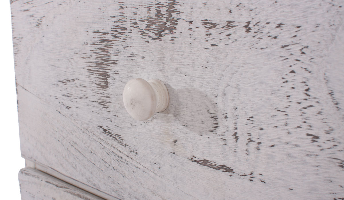 Erleben Sie den einzigartigen Charme des Shabby-Looks. Die Oberfläche dieser Kommode, die rustikal und spielerisch zugleich wirkt, verleiht Ihrem Raum eine besondere Atmosphäre. Trotz ihrer lädierten Anmutung ist die Verarbeitung qualitativ hochwertig, gefertigt aus erstklassigen Materialien.