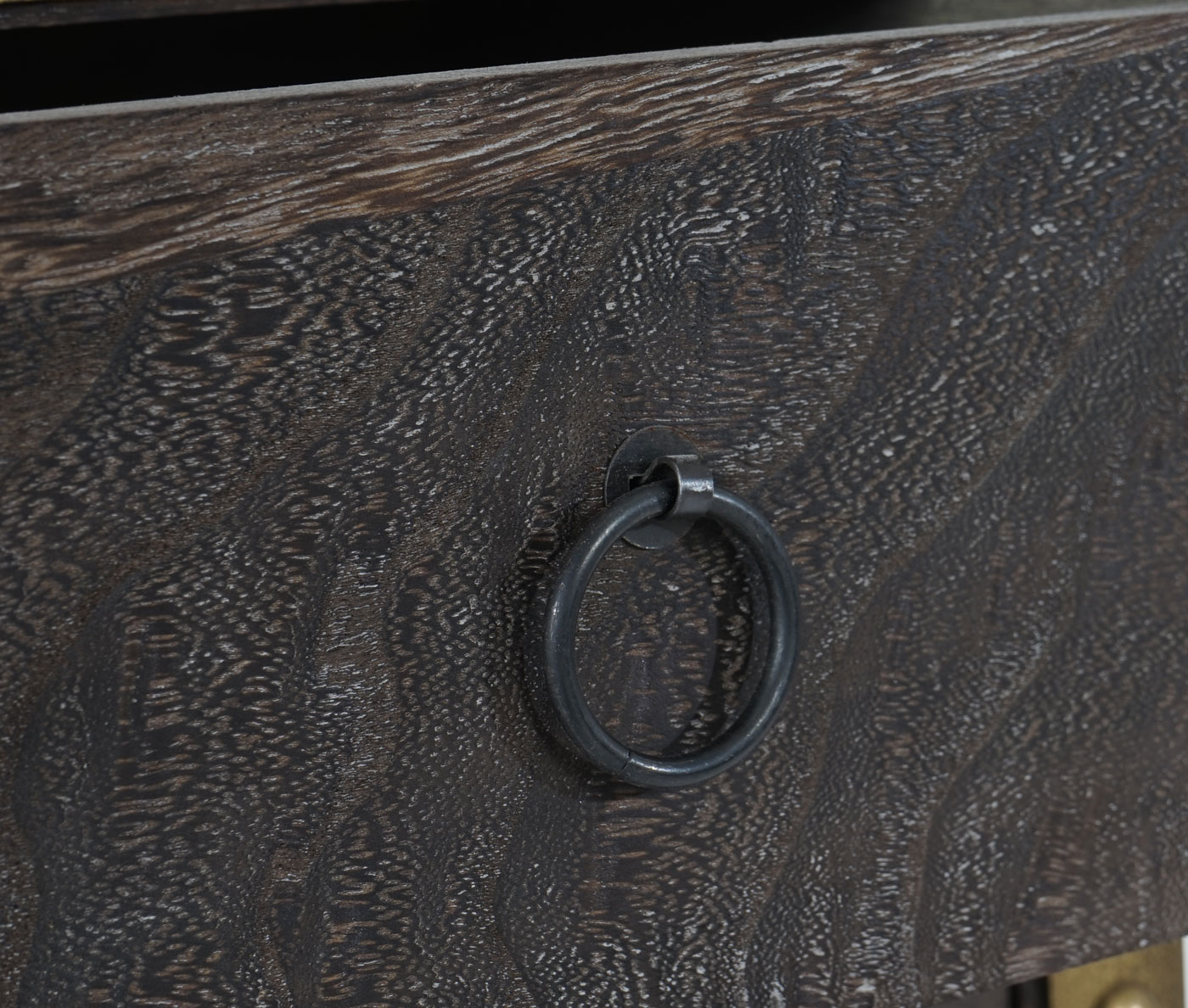 Gefertigt aus MDF und massivem Paulowniaholz, beeindruckt diese Kommode mit hoher Qualität und Stabilität. Die gebürstete Oberfläche verleiht ihr einen einzigartigen Shabby-Look, der die Eleganz der rustikalen und gleichzeitig spielerischen Leichtigkeit unterstreicht.