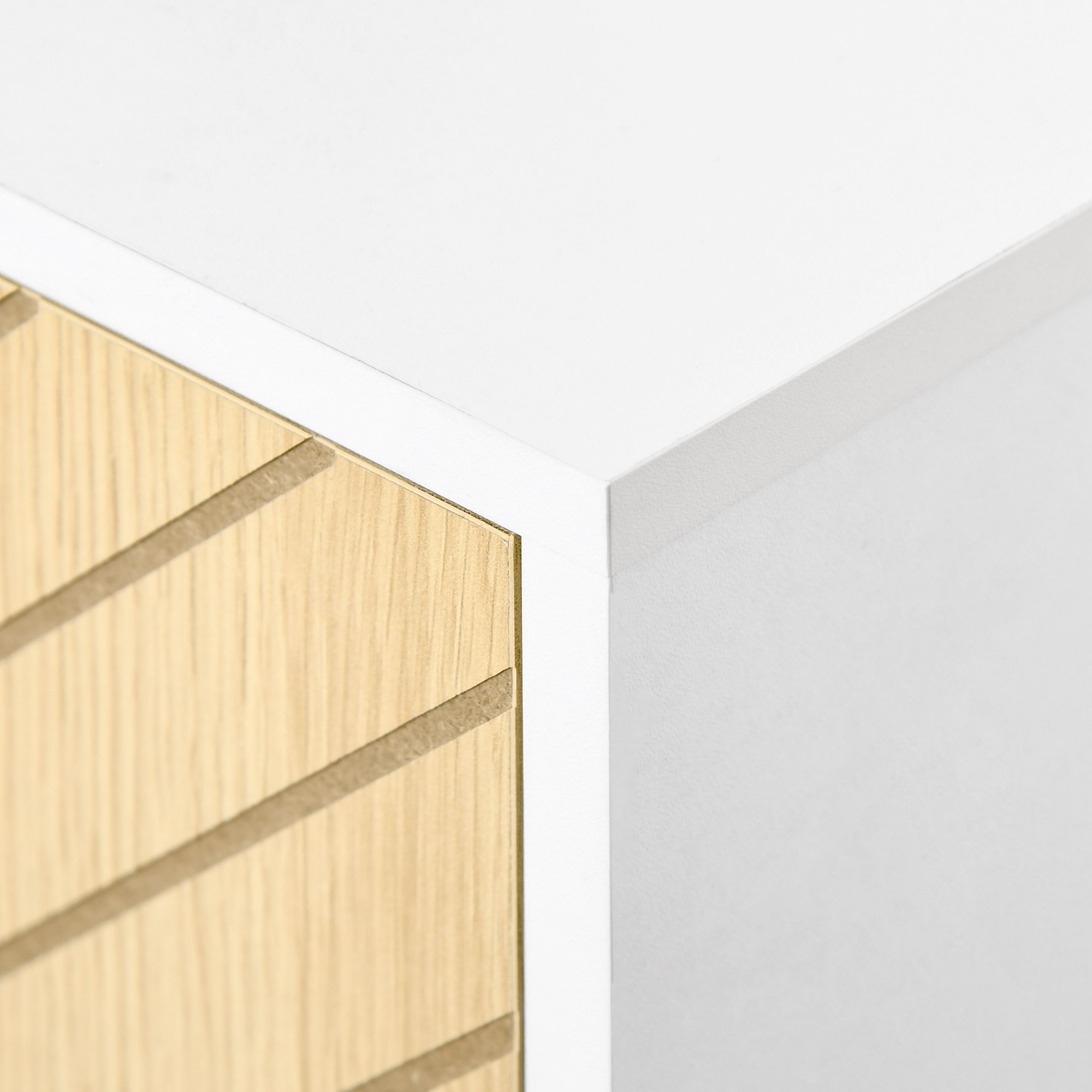 – Das strukturierte Muster auf der Vordertür verleiht diesem Schrank ein einzigartiges und trendiges Design