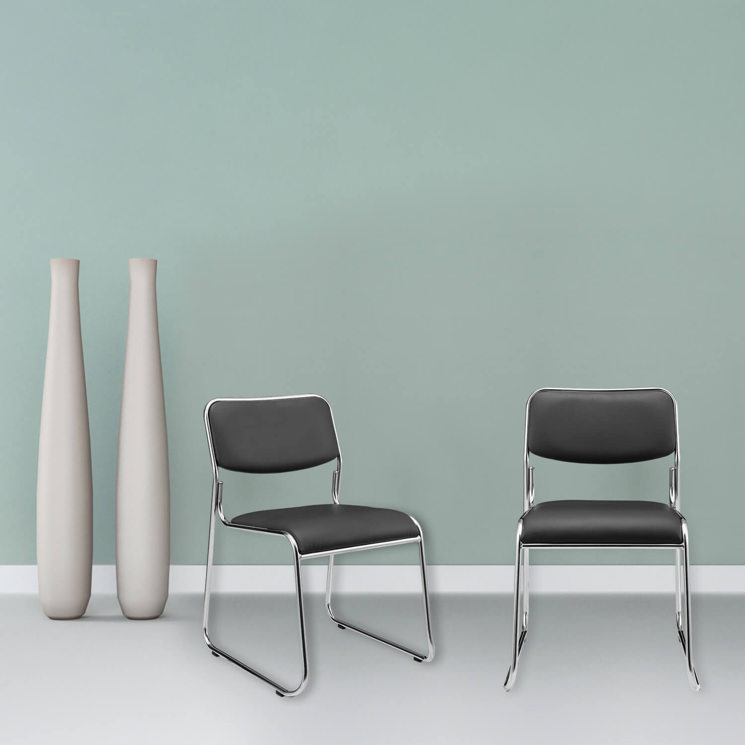 Das Stuhlset ist repräsentativ im Chefzimmer, stilvoll in der Besucherlounge und komfortabel im Konferenzraum. Sowohl die Sitzfläche als auch die Rückenlehne dieser Objektstühle sind ergonomisch geformt, bequem gepolstert und mit Kunstleder ausgestattet.
