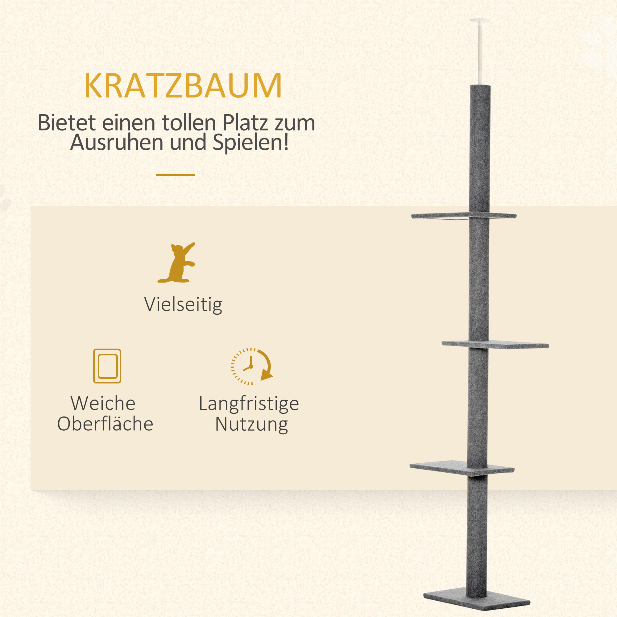 Unterhalten Sie Ihre Katzen mit diesem Kratzbaum! Dieser besondere Haustierspielbereich bietet eine Menge superspaßiger und interessanter Aktivitäten für Ihre vierbeinigen Freunde. Mit 4 Plattformen zum Schlafen und Sonnenbaden ist dieser multifunktionale Kratzbaum die perfekte Lösung für Häuser mit mehr als einer verspielten Katze! Katzenkratzer sind sowohl für Haustiere als auch für den Besitzer von Vorteil, da sie den Katzen einen Ort bieten, an dem sie ihre Kratzlust ausleben können.