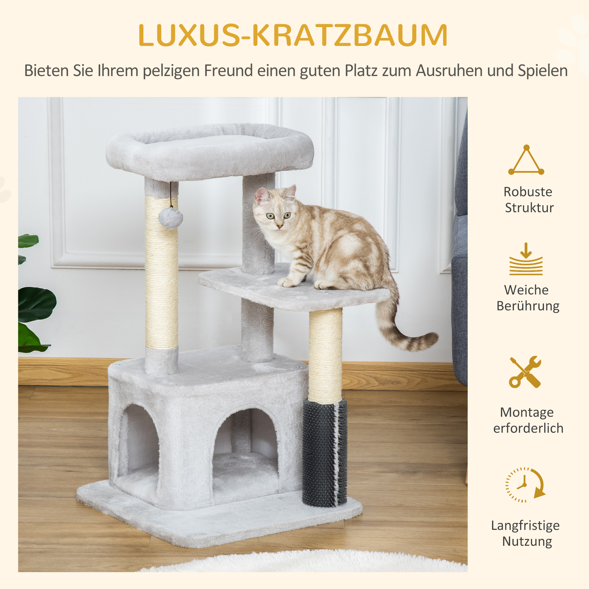 Befriedigen Sie die Instinkte Ihrer Katze mit diesem Kratzbaum. Dieses Multi-Eckkratzbaum bietet Sisalpfosten, eine Katzenhöhle, Katzenbett, Plattformen und integriertes Spielzeug für jede Menge Spaß. Aktivitätskratzbaum sind sowohl für Haustiere als auch für ihre Besitzer von Vorteil, da sie den Katzen die Möglichkeit bieten, ihre Kratz- und Kletterlust zu befriedigen und Ihre Teppiche und Möbel vor Schäden bewahren.