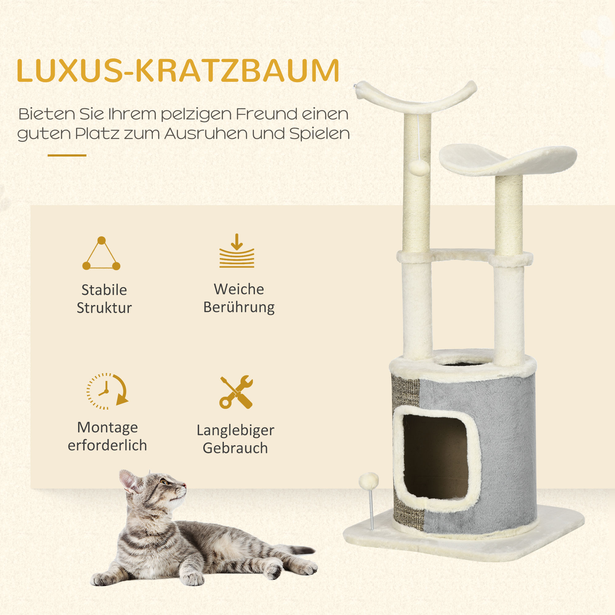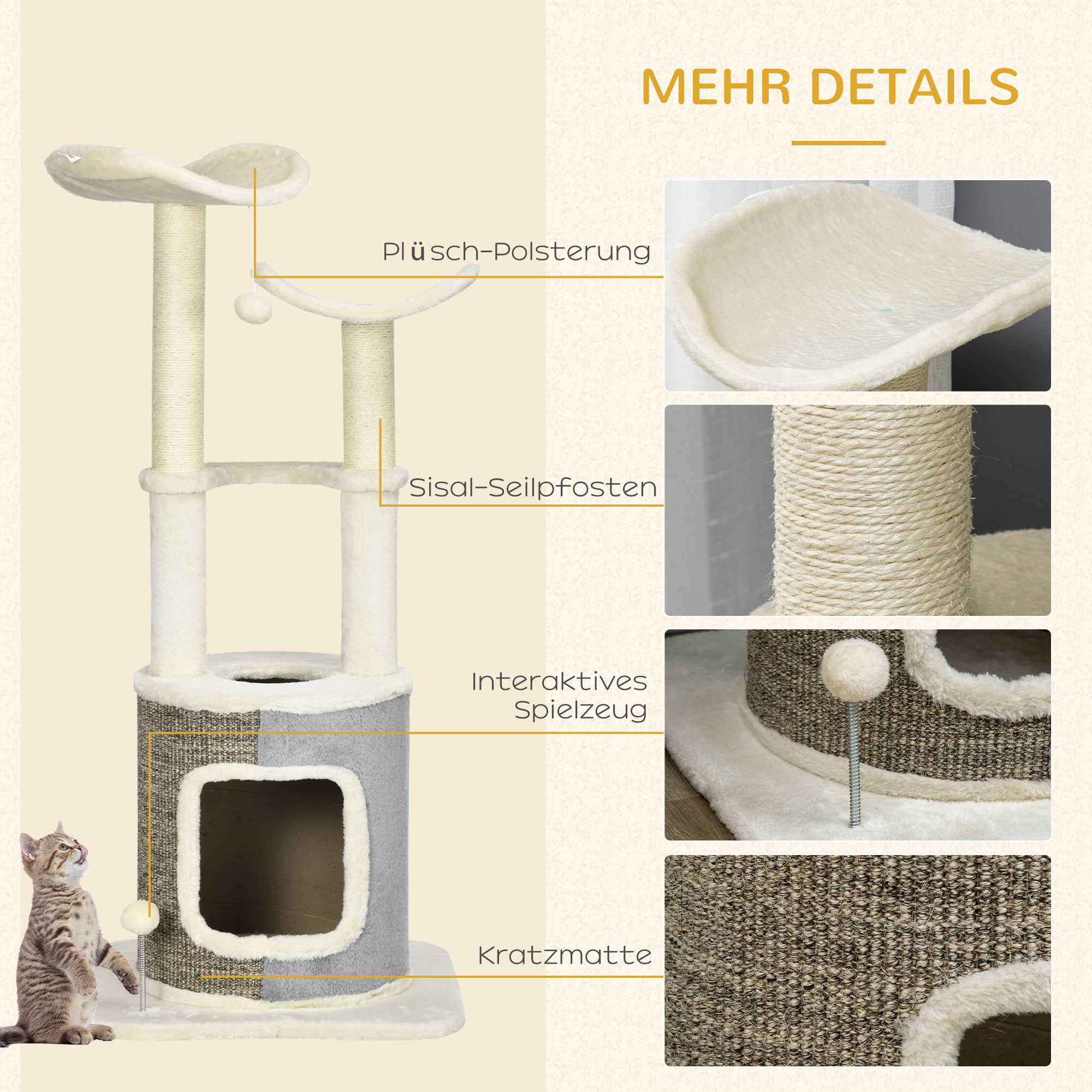 Diese raffinierte Kombination aus Katzenkratzbaum und Katzenhaus eignet sich ideal für kratzwütige, kleine Haustiger. Die zwei Liegeplattformen, eine Zwischenstufe, die robusten Kratzstämme und der hängende Spielball werden Ihre Katze sicher bei Laune halten, sodass sie reichlich Möglichkeiten zum Klettern, Ruhen und Spielen erhält. Das geräumige Katzenkratzbaums bildet dabei einen hervorragenden Ort zum Zurückziehen, wenn Ihre Katze nicht gerade auf den weichen, hohen Plattformen faulenzt.