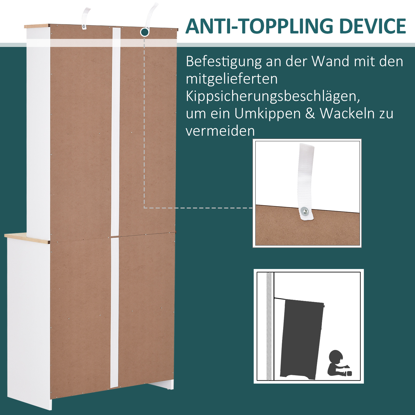 ✓ Ein verstellbares Regal im oberen Schrank ermöglicht flexible Aufbewahrungsmöglichkeiten
